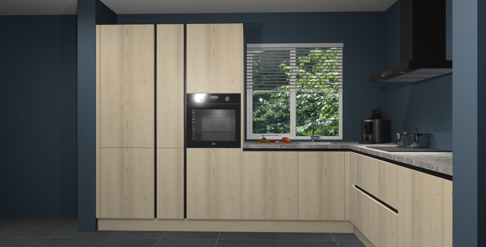 Met een modern, tijdloos design en ruime opslagruimte, zult u zich in no-time thuis voelen in uw nieuwe keuken. Uw leven wordt eenvoudiger met de soft-close deuren die voor het ultieme stille comfort zorgen - geen geluid dat u stoort terwijl u kookt. Ook is de keuken voorzien van 5 ingebouwde apparaten: een oven, inductie kookplaat, afzuigkap, vaatwasser en koelkast. Deze kunnen gemakkelijk na bestelling worden bijgewerkt naar AEG - waardoor uw luxe ervaring compleet is.