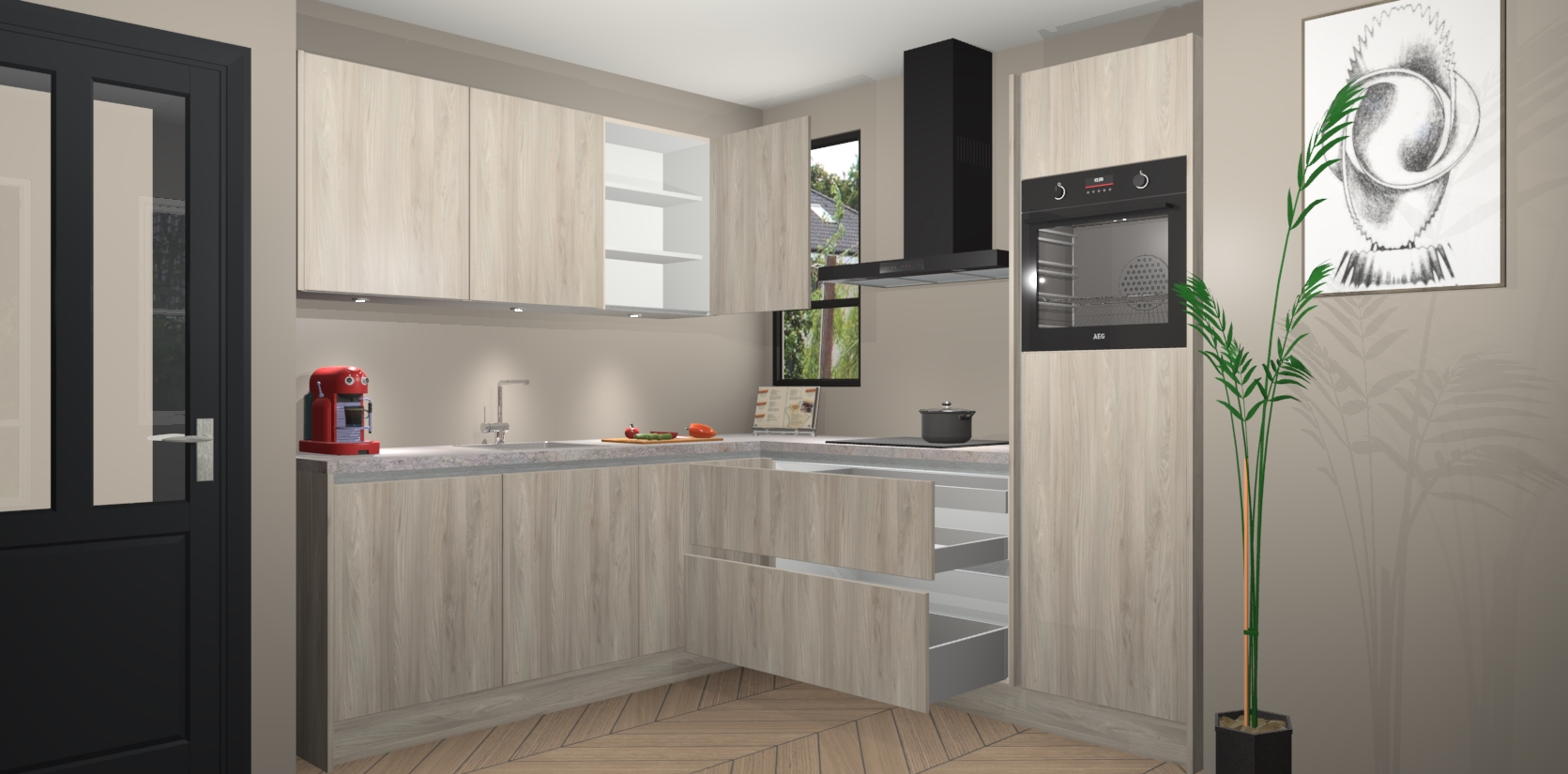 Als extra werd de prijs zo laag mogelijk vastgesteld, zonder aan de kwaliteit te raken. Zo heb je gegarandeerde Duitse keukenkwaliteit waarmee je jarenlang plezier beleeft aan het ontwerp. En dat alles wordt gecombineerd met een supersnelle service van maar liefst 7 weken!