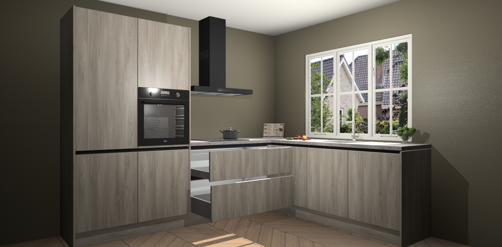 Inclusief plinten, stelpoten en werkblad