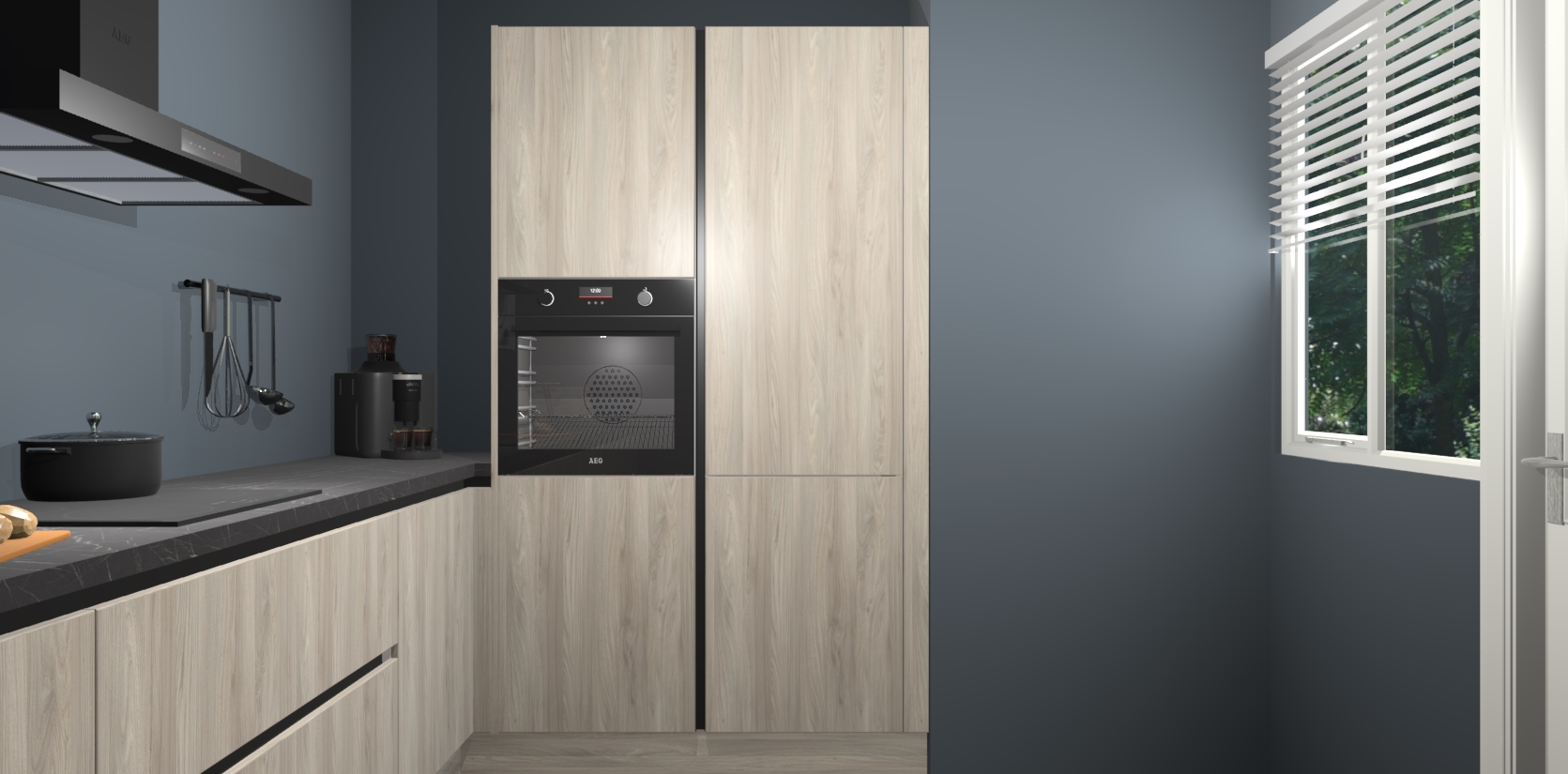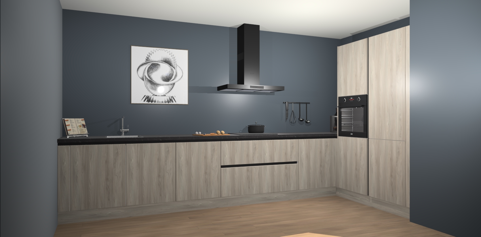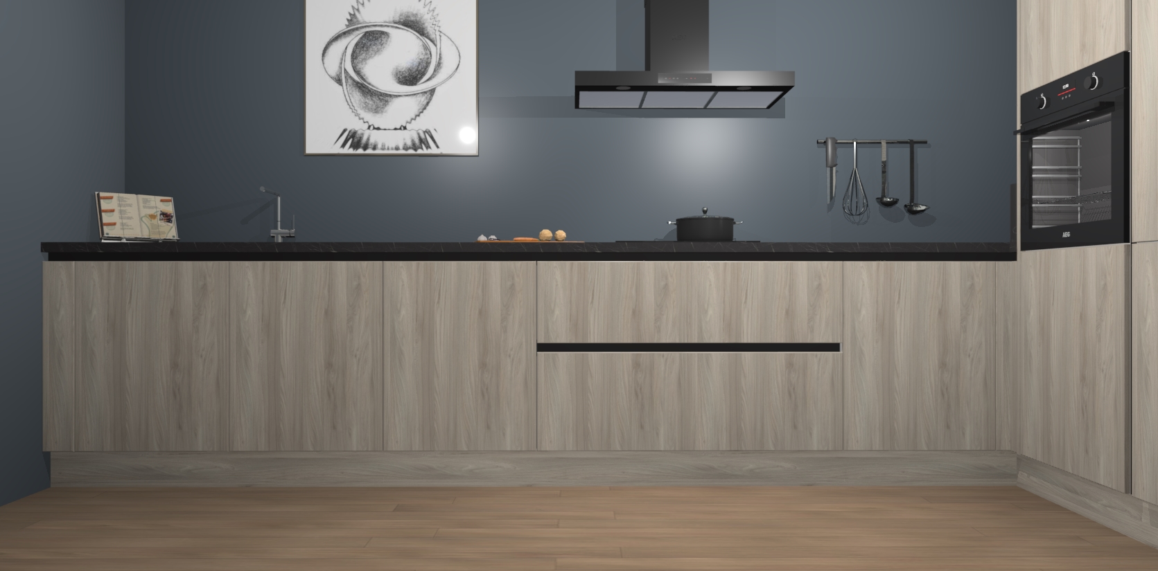 Welkom bij de Olm greeploze keuken Khao Lak. Deze prachtige keuken zal de komende jaren het middelpunt van de belangstelling in uw huis zijn. Uitgerust met vijf inbouwapparaten komt u nooit kookgereedschap tekort. Bovendien geeft de warme houtlook elke ruimte een uitnodigende en tijdloze uitstraling.