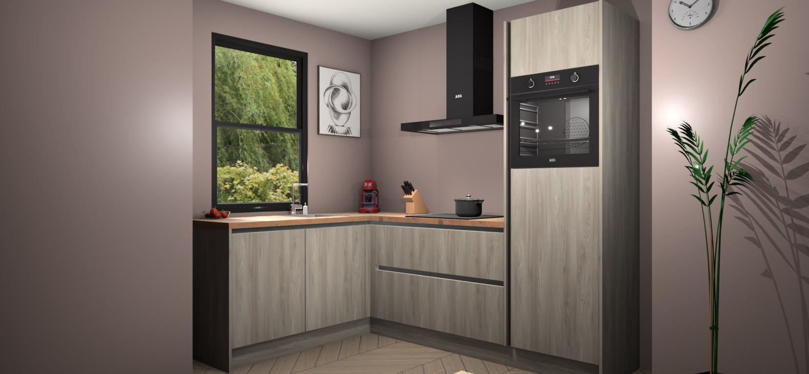 Deze prachtige hoekkeuken heeft alle benodigdheden om uw droomkook- en eetruimte compleet te maken. De Olm kasten bieden een echo van raffinement, terwijl de 5 inbouwapparaten genoeg opties bieden voor het bereiden van heerlijke maaltijden. De oven, inductiekookplaat, afzuigkap, vaatwasser en koelkast zorgen ervoor dat u tijd in de keuken zo efficiënt mogelijk verloopt, terwijl ze ook dat extra vleugje luxe bieden.
