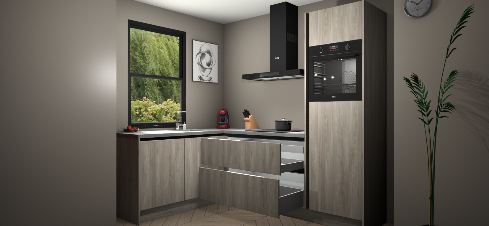 Inclusief plinten, stelpoten en werkblad