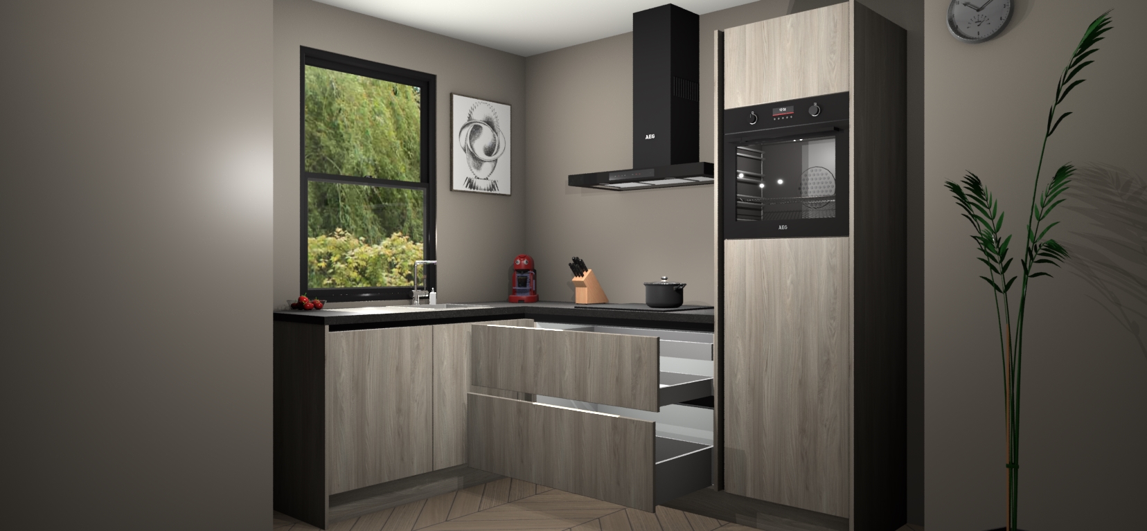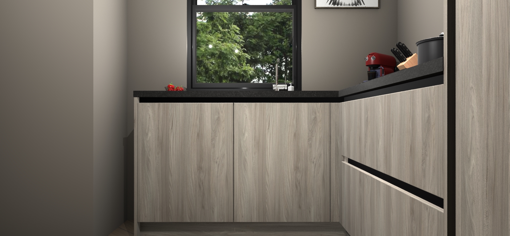 In deze box zijn alle kleuren verzameld van de deuren en werkbladen. Vraag de gratis kleurenbox aan en kijk thuis rustig verder!