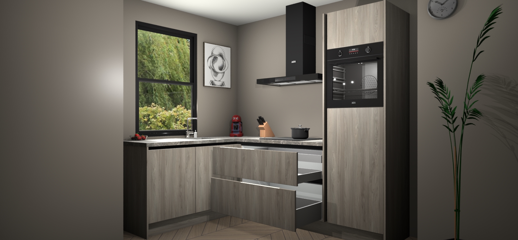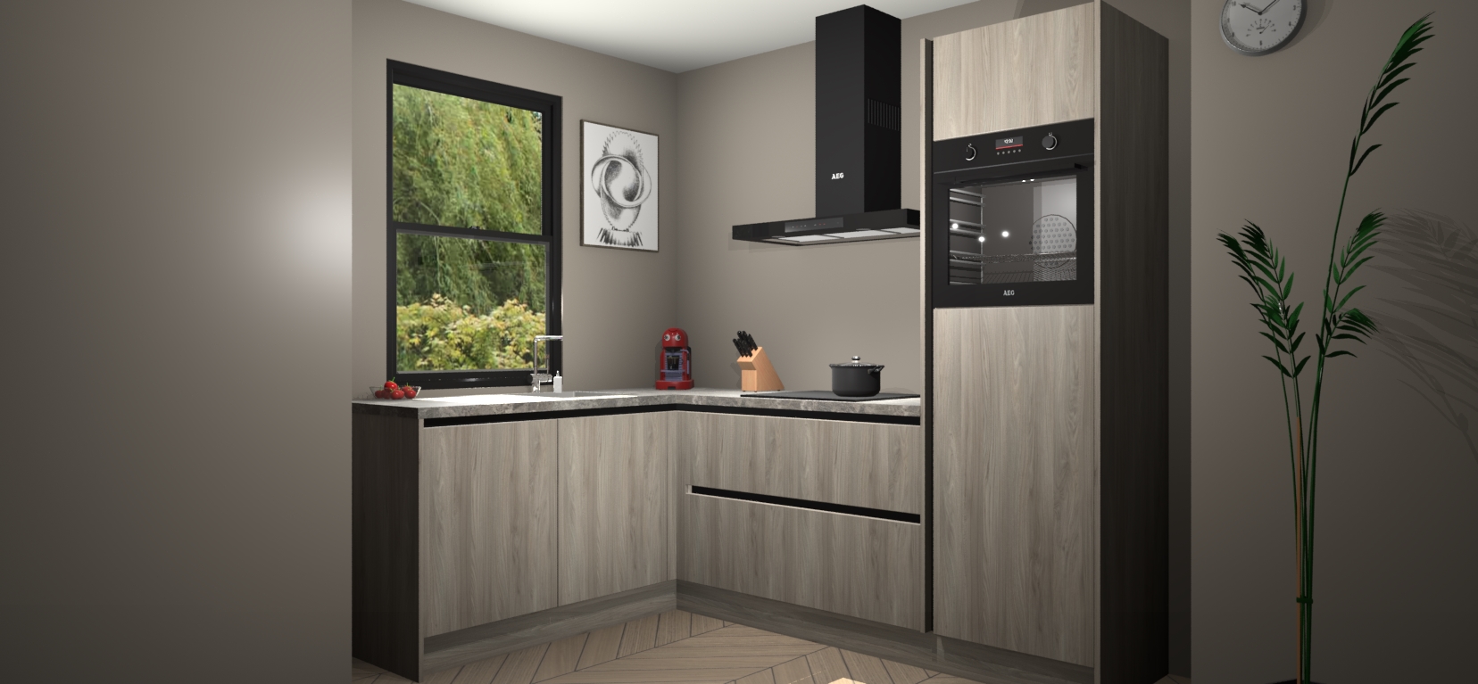 Deze prachtige hoekkeuken heeft alle benodigdheden om uw droomkook- en eetruimte compleet te maken. De Olm kasten bieden een echo van raffinement, terwijl de 5 inbouwapparaten genoeg opties bieden voor het bereiden van heerlijke maaltijden. De oven, inductiekookplaat, afzuigkap, vaatwasser en koelkast zorgen ervoor dat u tijd in de keuken zo efficiënt mogelijk verloopt, terwijl ze ook dat extra vleugje luxe bieden.