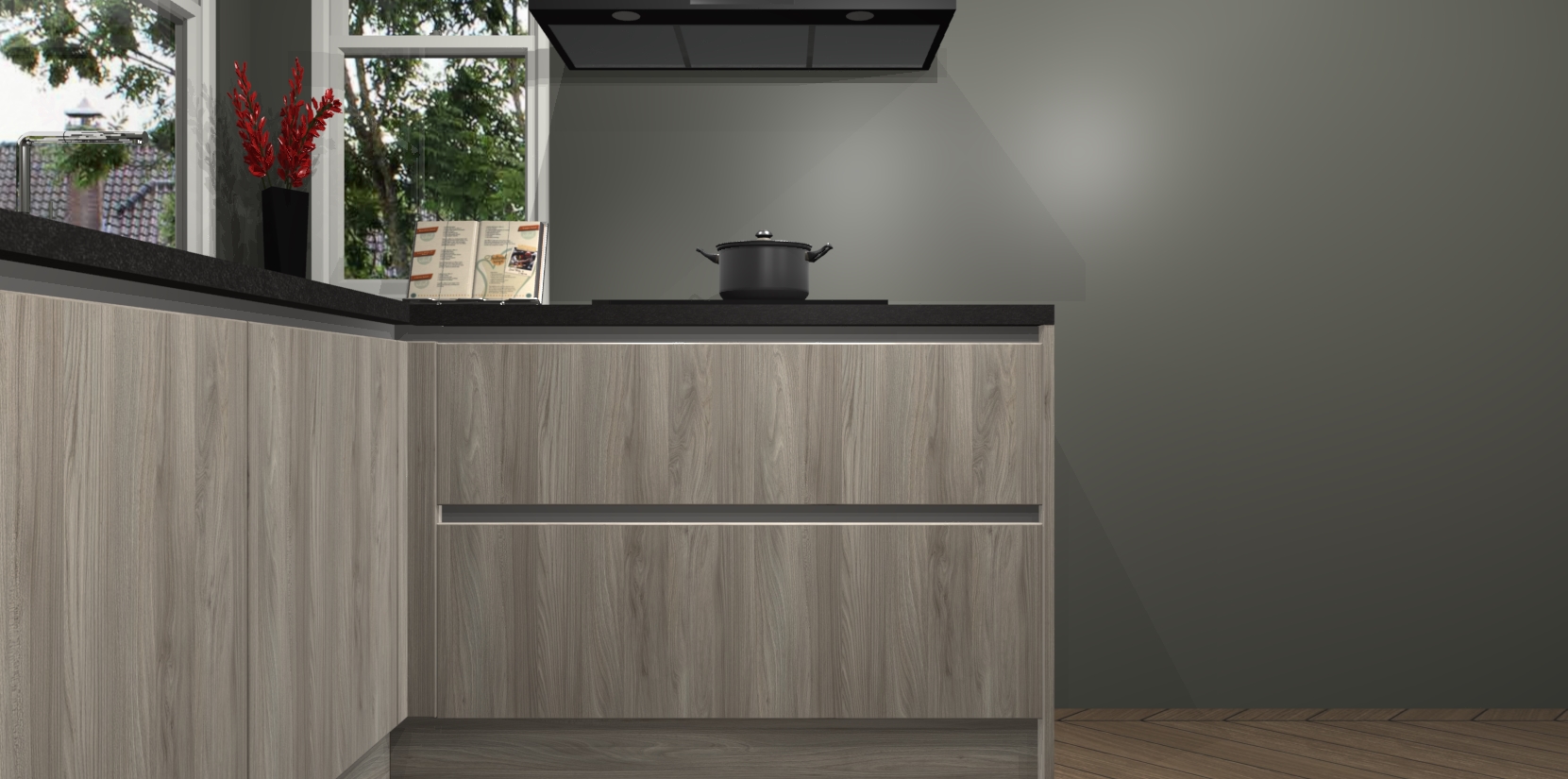 We hebben iets speciaals voor u: de Olm greeploze keuken Kotor. Het is een hoekkeuken die sfeer en warmte uitstraalt, en zijn hout-look geeft hem een unieke touch. Perfect voor elk huis!