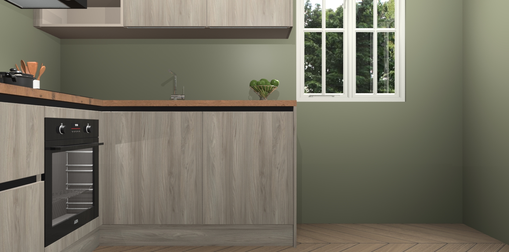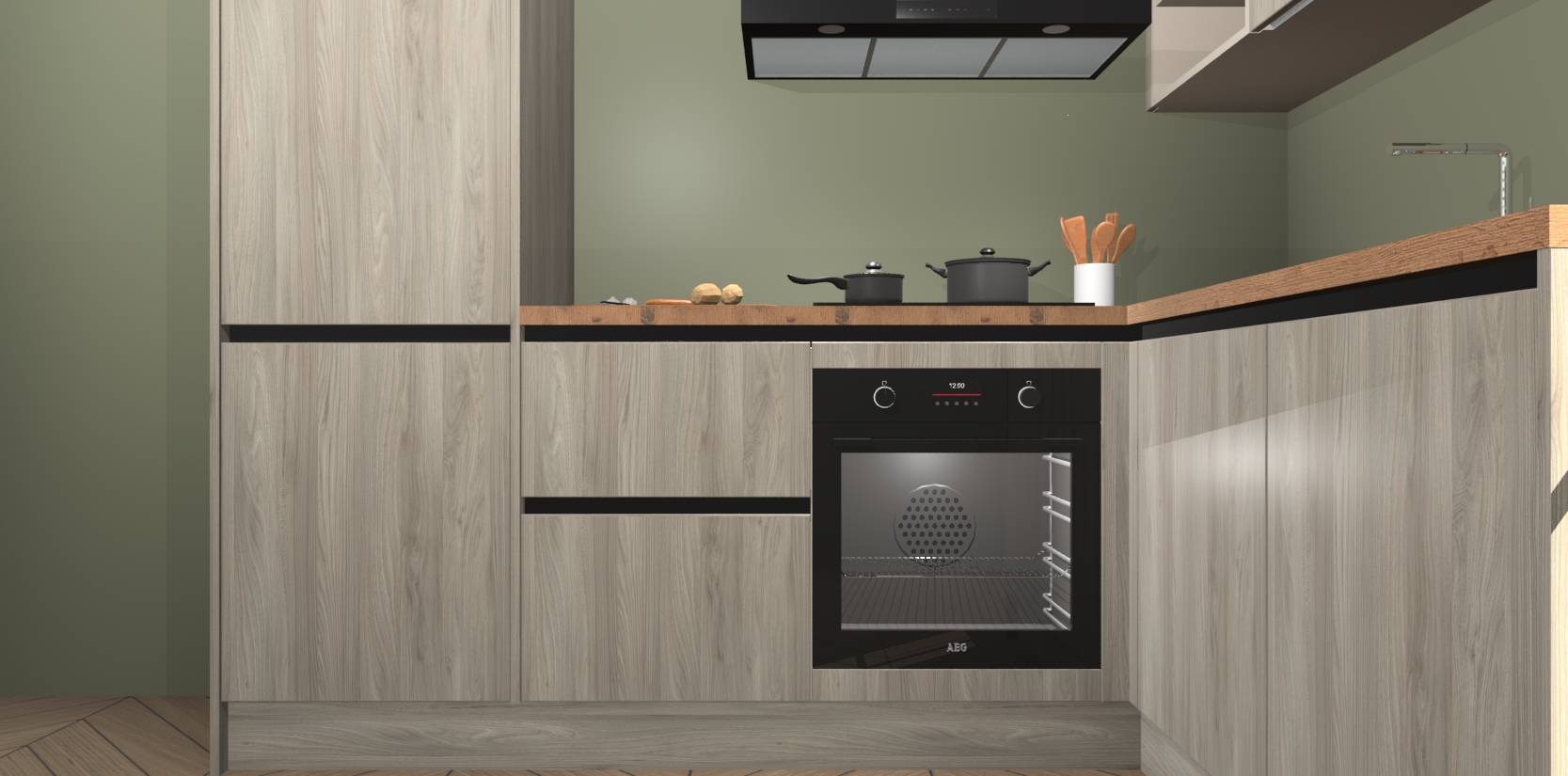 Dit model biedt u voldoende opbergruimte en vijf ingebouwde apparaten: een oven, inductiekookplaat, afzuigkap, vaatwasser en koelkast. Deze apparaten kunnen gemakkelijk worden geüpgrade naar AEG nadat u besteld heeft. De verschillende laden en kastjes bevatten softclose-deuren waardoor ze gezellig dichtvallen met een geruststellend helemaal geruisloos geluid. En dat is nog niet alles! We garanderen ook dat de prijs altijd laag blijft - dus haal nu uw Olm greeploze keuken Krakau terwijl het kan.