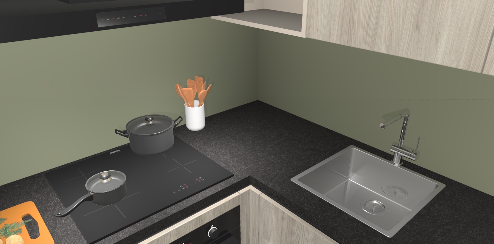 - Uitsparing van kookplaat, spoelbak en kraan dient u zelf te verzorgen.