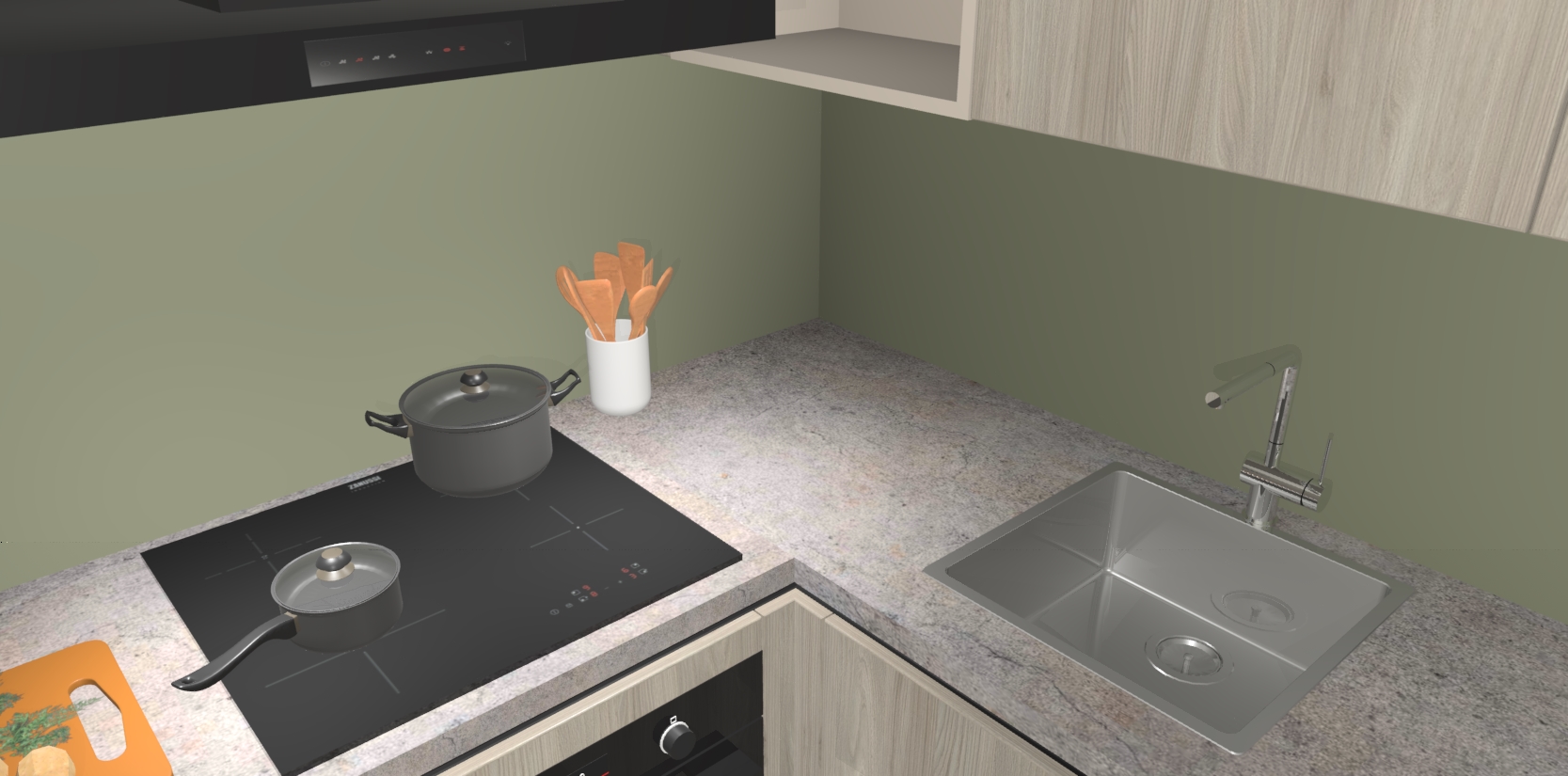 • Uitsparing van kookplaat, spoelbak en kraan dient u zelf te verzorgen.