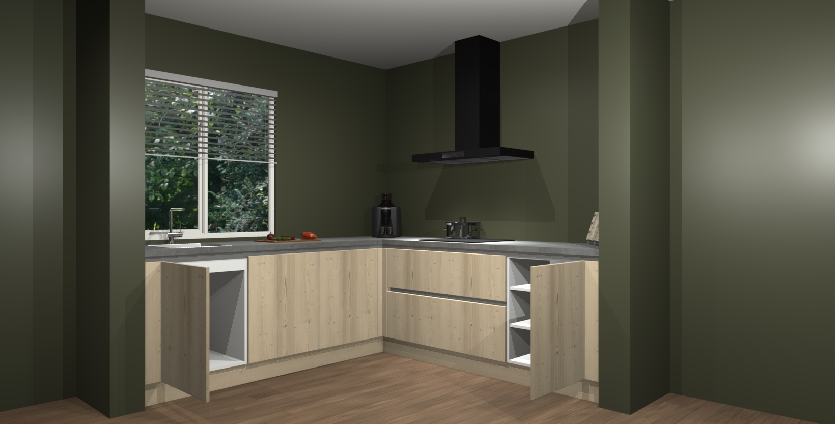 Hoekonderkast met le-mans systeem