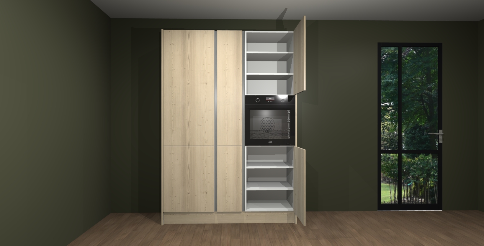 Met een modern, tijdloos design en ruime opslagruimte, zult u zich in no-time thuis voelen in uw nieuwe keuken. Uw leven wordt eenvoudiger met de soft-close deuren die voor het ultieme stille comfort zorgen - geen geluid dat u stoort terwijl u kookt. Ook is de keuken voorzien van 5 ingebouwde apparaten: een oven, inductie kookplaat, afzuigkap, vaatwasser en koelkast. Deze kunnen gemakkelijk na bestelling worden bijgewerkt naar AEG - waardoor uw luxe ervaring compleet is.