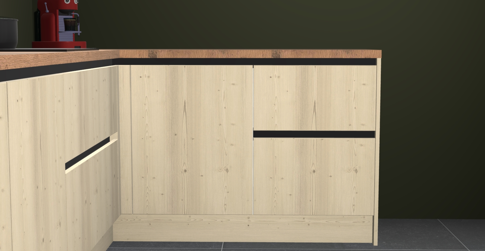 - De plint wordt c.a. 5 mm lager geleverd dan de ''plint hoogte'', dit heeft u nodig voor de beluchting en afstelmogelijkheid