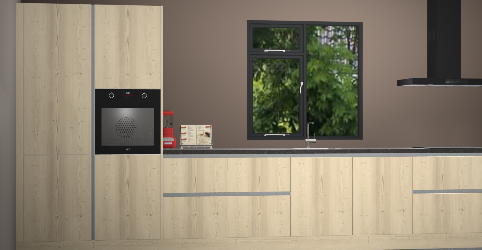 De Olm keuken Lille wordt geleverd met vijf inbouwapparaten - een oven, inductiekookplaat, afzuigkap, vaatwasser en koelkast. Maar dat is nog niet alles! Na bestelling kunnen deze apparaten eenvoudig worden geüpgraded naar premium AEG-apparatuur. Bovendien is er zelfs de optie om de oven te vervangen door een combimagnetron of uw inductiekookplaat te vervangen door een kookplaat met geïntegreerde afzuiging.