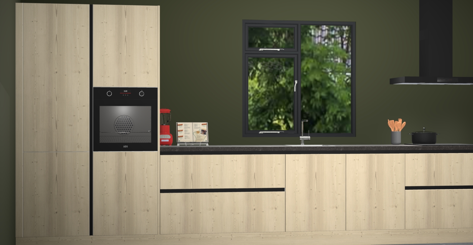 De Olm keuken Lille wordt geleverd met vijf inbouwapparaten - een oven, inductiekookplaat, afzuigkap, vaatwasser en koelkast. Maar dat is nog niet alles! Na bestelling kunnen deze apparaten eenvoudig worden geüpgraded naar premium AEG-apparatuur. Bovendien is er zelfs de optie om de oven te vervangen door een combimagnetron of uw inductiekookplaat te vervangen door een kookplaat met geïntegreerde afzuiging.
