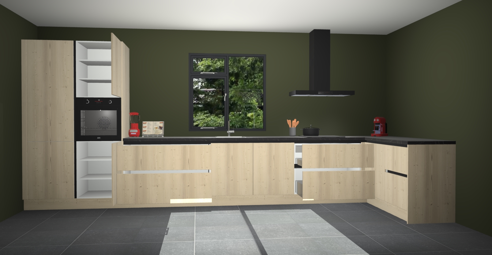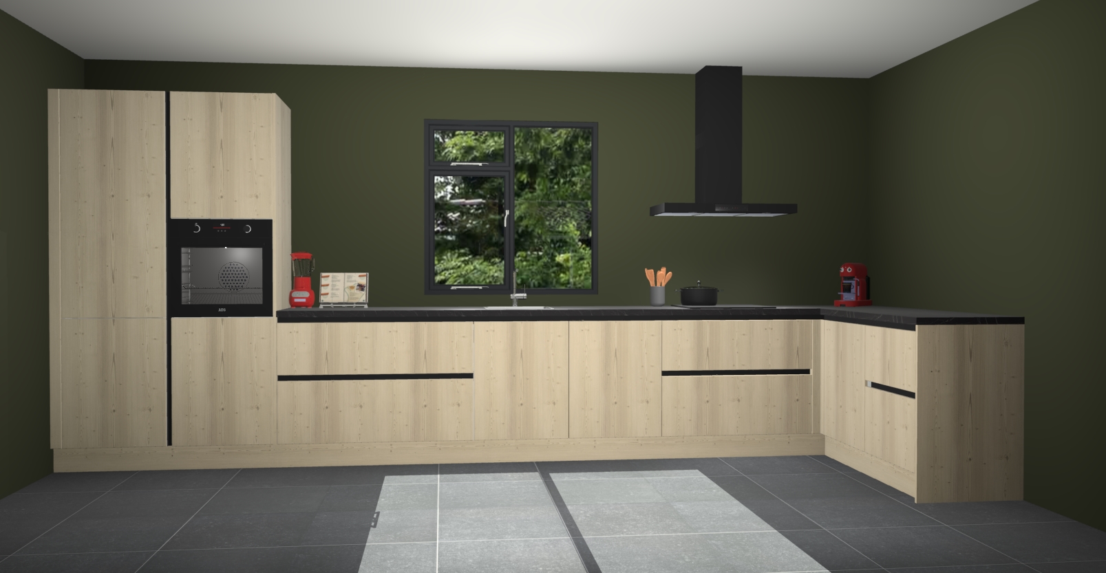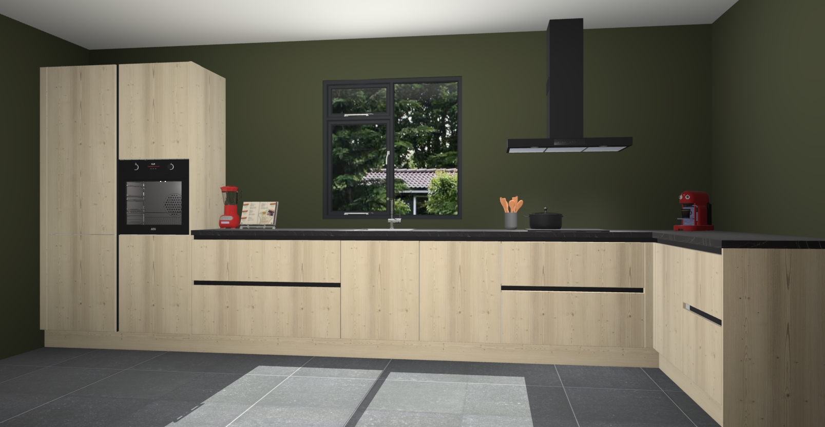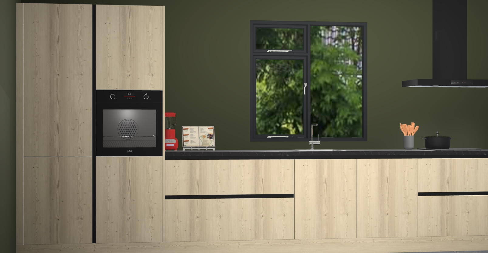 De Olm keuken Lille wordt geleverd met vijf inbouwapparaten - een oven, inductiekookplaat, afzuigkap, vaatwasser en koelkast. Maar dat is nog niet alles! Na bestelling kunnen deze apparaten eenvoudig worden geüpgraded naar premium AEG-apparatuur. Bovendien is er zelfs de optie om de oven te vervangen door een combimagnetron of uw inductiekookplaat te vervangen door een kookplaat met geïntegreerde afzuiging.