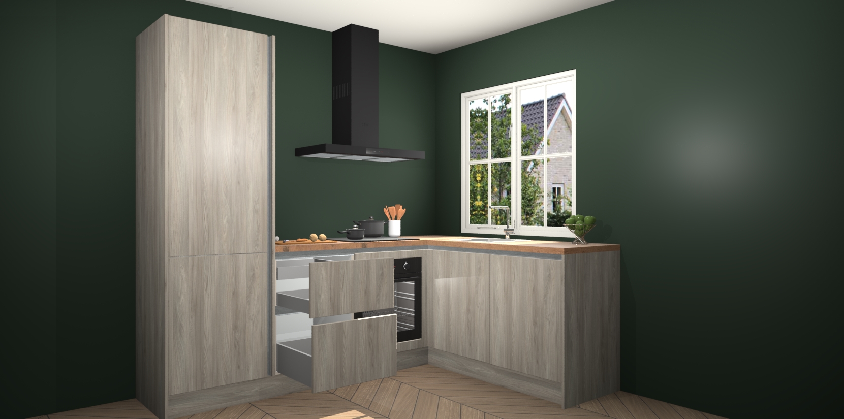 De Olm greeploze keuken Linz is de perfecte keuze voor uw nieuwe moderne en tijdloze keuken. Ga voor moderne en tijdloze elegantie in uw keuken. De prachtige hoekkeuken biedt een verfrissende kijk op de manier waarop we ons vertrouwde keukenontwerp kunnen aanpassen in een nieuwe stijl. Één blik om alles te zien: zo mooi dat het bijna magisch lijkt.