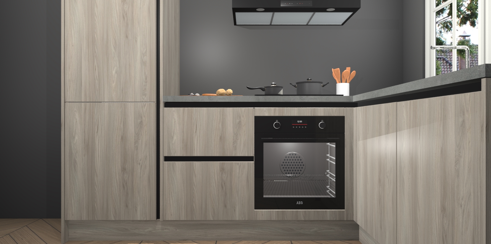 Met de Olm greeploze keuken Linz krijgt u 5 op maat gemaakte apparaten: een oven, inductiekookplaat, afzuigkap, vaatwasser en koelkast die na bestelling makkelijk worden geüpgraded naar AEG-producten. Met de zacht sluitende deuren, bent u verzekerd van eenvoudige bediening in stilte. Het kastmeubilair wordt alvast pre-assemblage geleverd waardoor u sneller met het installeren begint. Ook zijn alle deuren voorzien van softclose zodat er geen sporen op de lade blijven als u ze dicht doet. Bovendien hoeft u bij ons geen twijfels of verassingen te hebben: we hebben een vaste lage prijs waardoor u weet wat u mag verwachten bij elke bestelling.