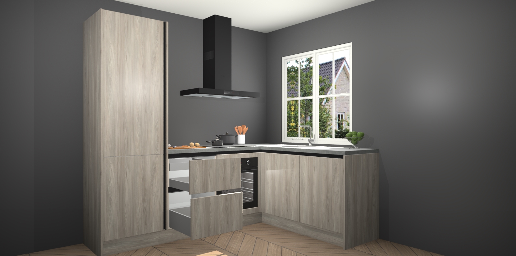 De Olm greeploze keuken Linz is de perfecte keuze voor uw nieuwe moderne en tijdloze keuken. Ga voor moderne en tijdloze elegantie in uw keuken. De prachtige hoekkeuken biedt een verfrissende kijk op de manier waarop we ons vertrouwde keukenontwerp kunnen aanpassen in een nieuwe stijl. Één blik om alles te zien: zo mooi dat het bijna magisch lijkt.