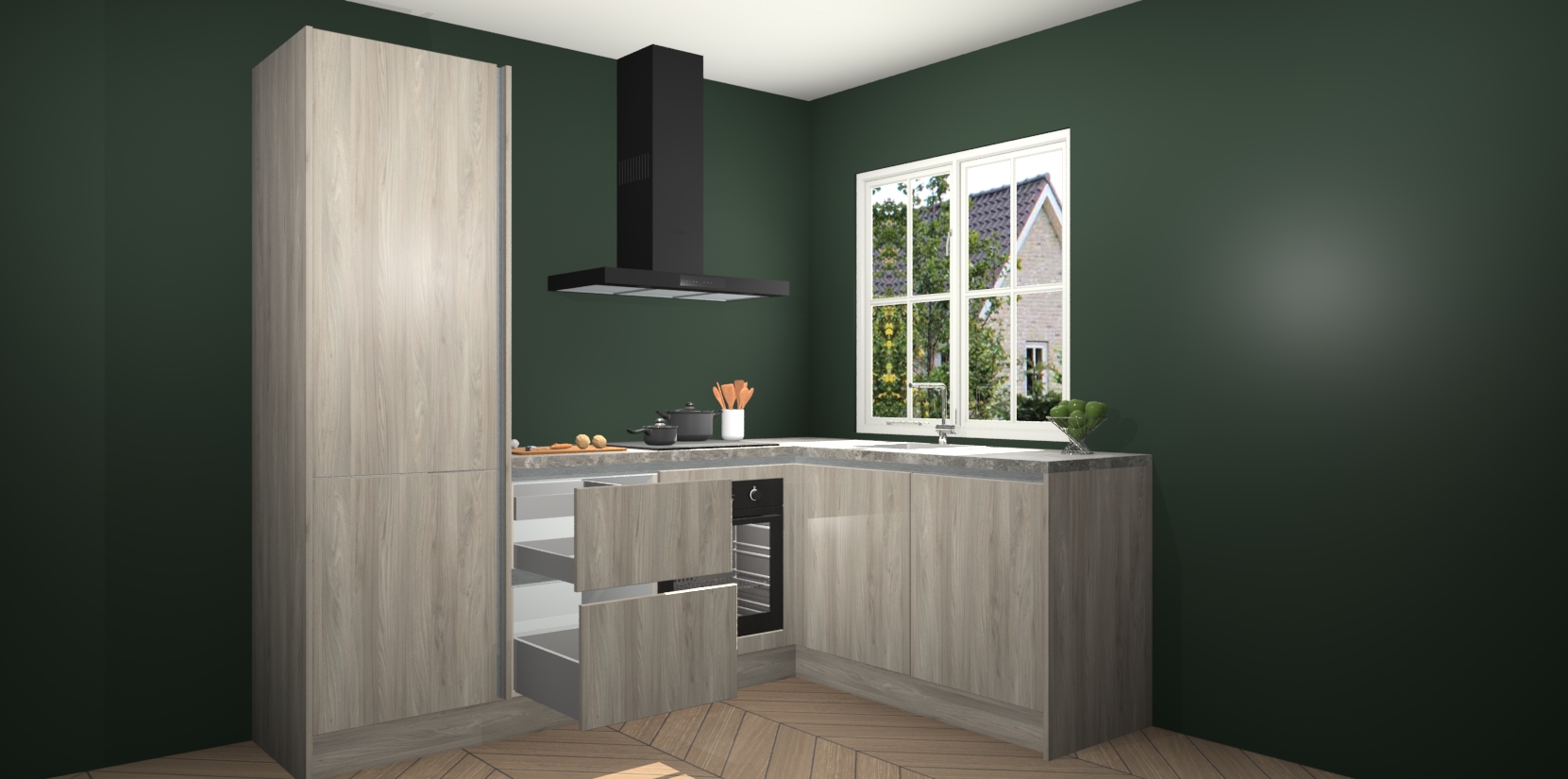 Met de Olm greeploze keuken Linz krijgt u 5 op maat gemaakte apparaten: een oven, inductiekookplaat, afzuigkap, vaatwasser en koelkast die na bestelling makkelijk worden geüpgraded naar AEG-producten. Met de zacht sluitende deuren, bent u verzekerd van eenvoudige bediening in stilte. Het kastmeubilair wordt alvast pre-assemblage geleverd waardoor u sneller met het installeren begint. Ook zijn alle deuren voorzien van softclose zodat er geen sporen op de lade blijven als u ze dicht doet. Bovendien hoeft u bij ons geen twijfels of verassingen te hebben: we hebben een vaste lage prijs waardoor u weet wat u mag verwachten bij elke bestelling.