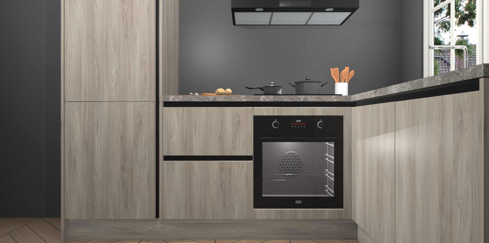 Met de Olm greeploze keuken Linz krijgt u 5 op maat gemaakte apparaten: een oven, inductiekookplaat, afzuigkap, vaatwasser en koelkast die na bestelling makkelijk worden geüpgraded naar AEG-producten. Met de zacht sluitende deuren, bent u verzekerd van eenvoudige bediening in stilte. Het kastmeubilair wordt alvast pre-assemblage geleverd waardoor u sneller met het installeren begint. Ook zijn alle deuren voorzien van softclose zodat er geen sporen op de lade blijven als u ze dicht doet. Bovendien hoeft u bij ons geen twijfels of verassingen te hebben: we hebben een vaste lage prijs waardoor u weet wat u mag verwachten bij elke bestelling.