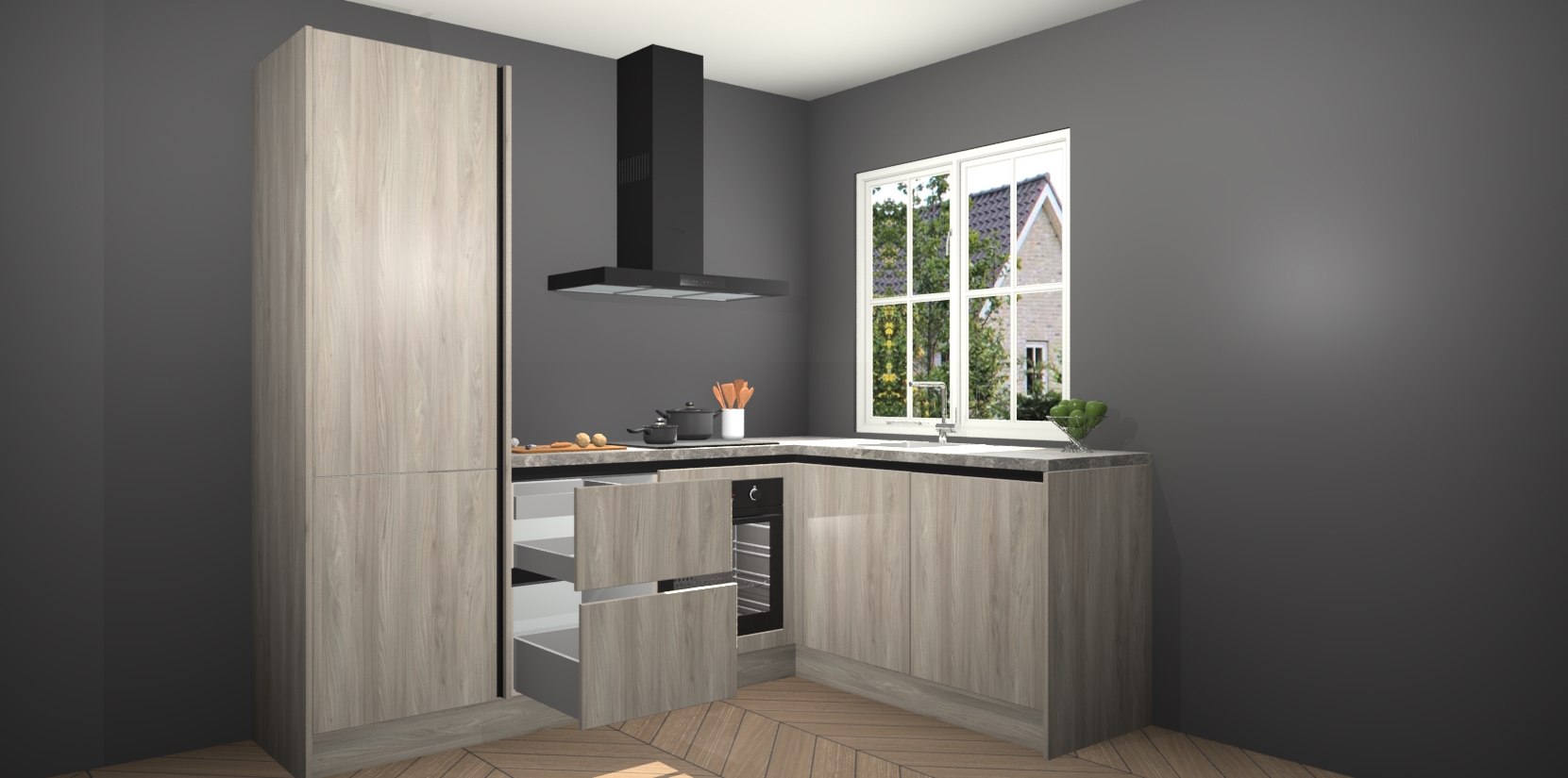 De Olm greeploze keuken Linz is de perfecte keuze voor uw nieuwe moderne en tijdloze keuken. Ga voor moderne en tijdloze elegantie in uw keuken. De prachtige hoekkeuken biedt een verfrissende kijk op de manier waarop we ons vertrouwde keukenontwerp kunnen aanpassen in een nieuwe stijl. Één blik om alles te zien: zo mooi dat het bijna magisch lijkt.