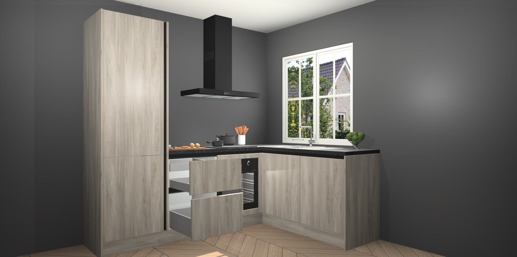 De Olm greeploze keuken Linz is de perfecte keuze voor uw nieuwe moderne en tijdloze keuken. Ga voor moderne en tijdloze elegantie in uw keuken. De prachtige hoekkeuken biedt een verfrissende kijk op de manier waarop we ons vertrouwde keukenontwerp kunnen aanpassen in een nieuwe stijl.  Één blik om alles te zien: zo mooi dat het bijna magisch lijkt.
