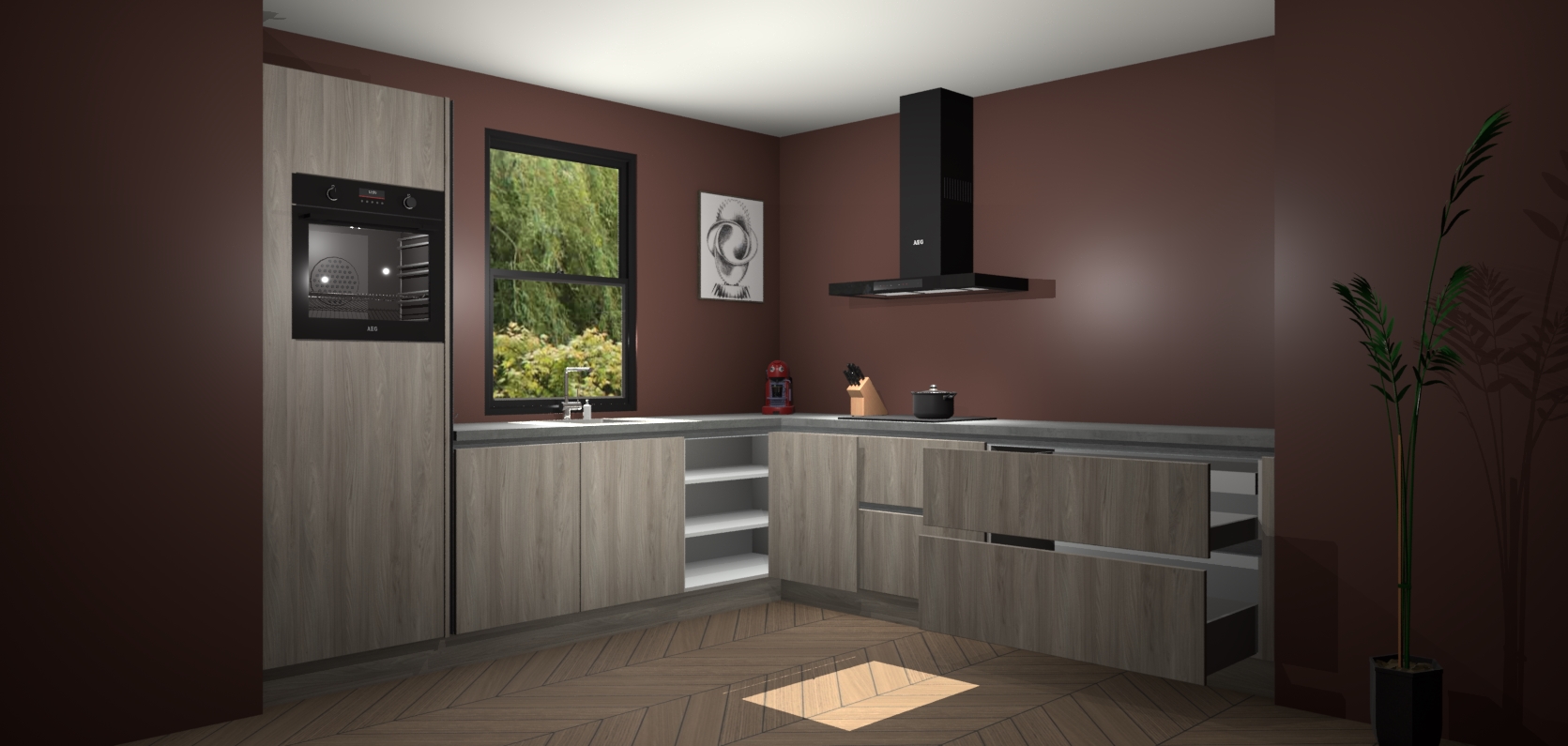 Welkom bij de olm keuken Lublin. Deze prachtige keuken zal de komende jaren het middelpunt van de belangstelling in uw huis zijn. Uitgerust met vijf inbouwapparaten komt u nooit kookgereedschap tekort. Bovendien geeft de warme houtlook elke ruimte een uitnodigende en tijdloze uitstraling.