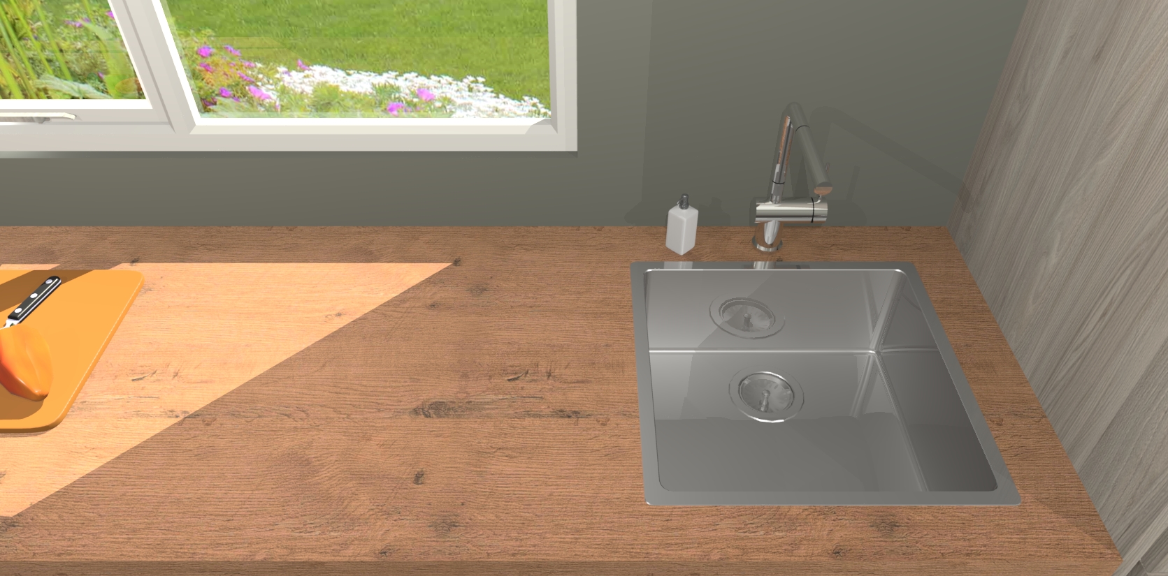 - De spoelbak is nog niet in gevreesd. Dit dient tijdens het werk gedaan te worden