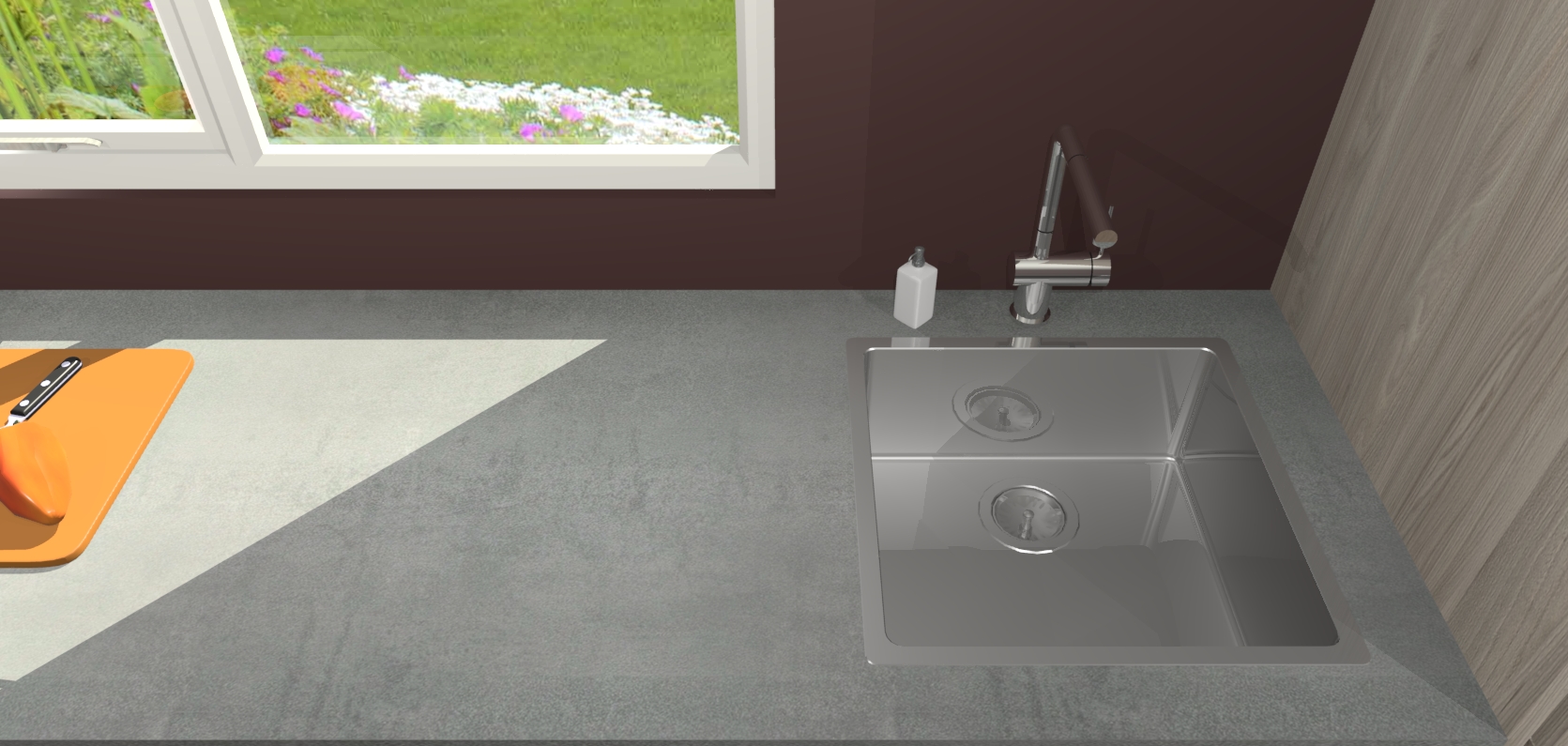 - De spoelbak is nog niet in gevreesd. Dit dient tijdens het werk gedaan te worden