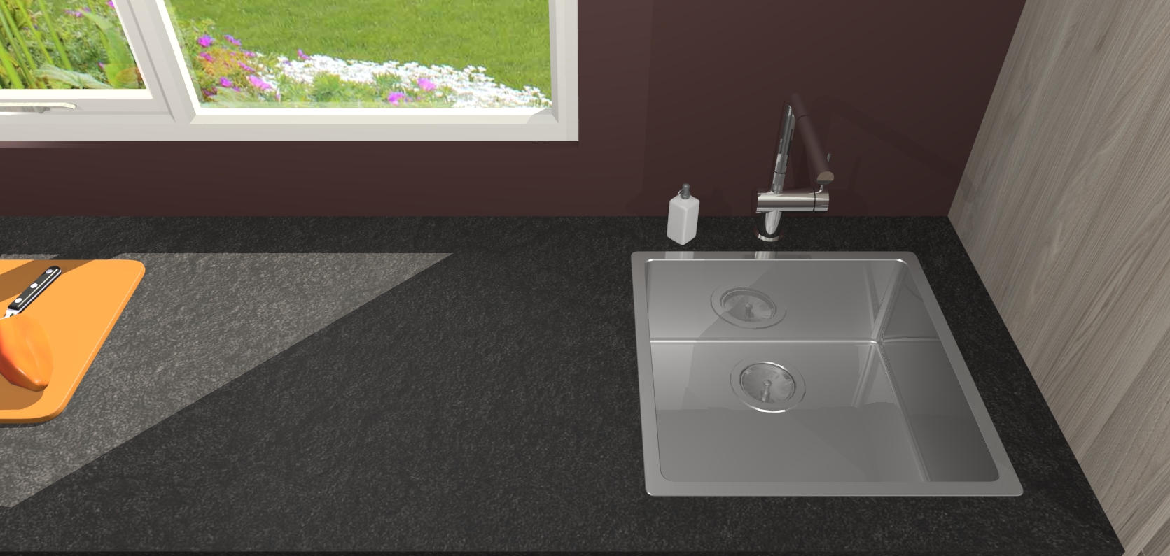 - De spoelbak is nog niet in gevreesd. Dit dient tijdens het werk gedaan te worden