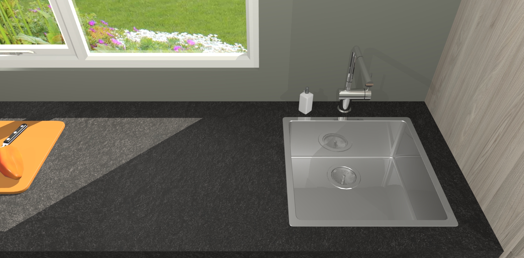 - De spoelbak is nog niet in gevreesd. Dit dient tijdens het werk gedaan te worden