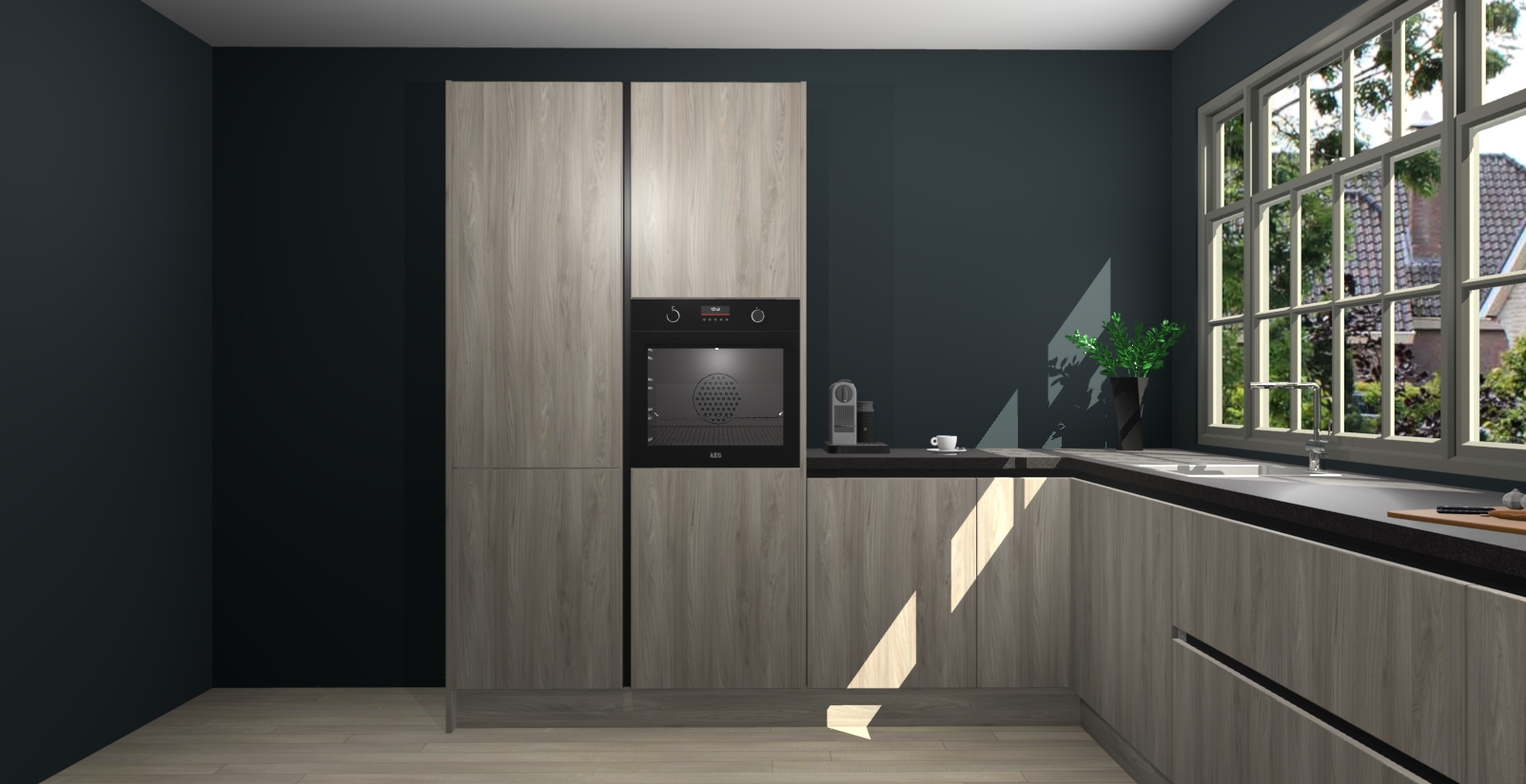 Kom dichtbij de perfecte keuken van uw dromen met de Olm greeploze keuken Malaga. Met een prachtige houtlook en eigentijds ontwerp, straalt deze keuken warmte en sfeer uit. Of u nu liefhebber bent van traditionele of moderne stijlen, er is genoeg ruimte om aan al uw behoeften te voldoen.