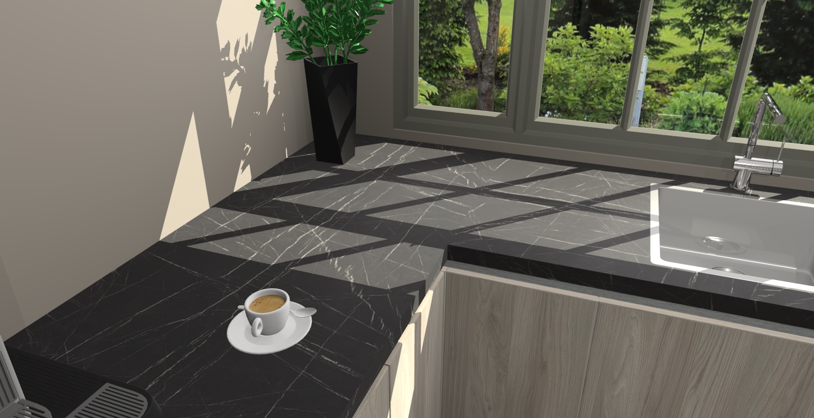 • Bij een hoekwerkblad zijn de hoeken in gevreesd en op maat gemaakt