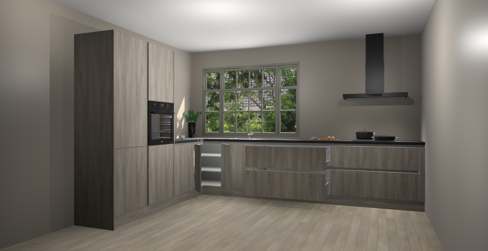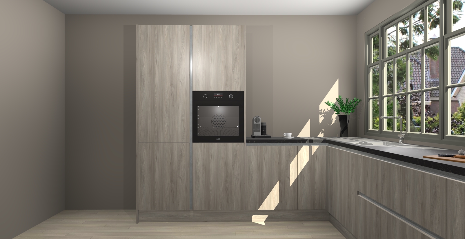 Kom dichtbij de perfecte keuken van uw dromen met de Olm greeploze keuken Malaga. Met een prachtige houtlook en eigentijds ontwerp, straalt deze keuken warmte en sfeer uit. Of u nu liefhebber bent van traditionele of moderne stijlen, er is genoeg ruimte om aan al uw behoeften te voldoen.