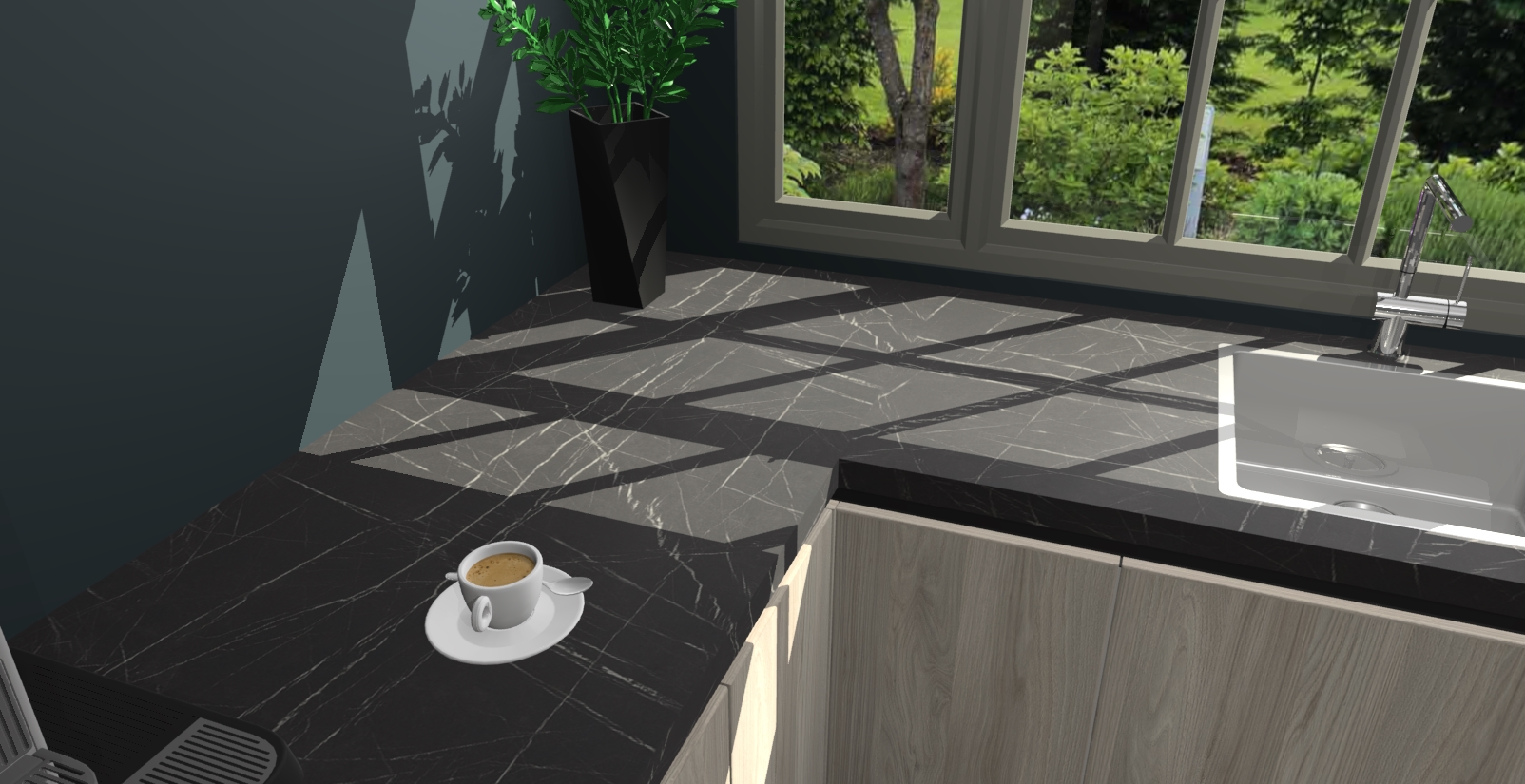 - Bij een hoekwerkblad zijn de hoeken in gevreesd en op maat gemaakt