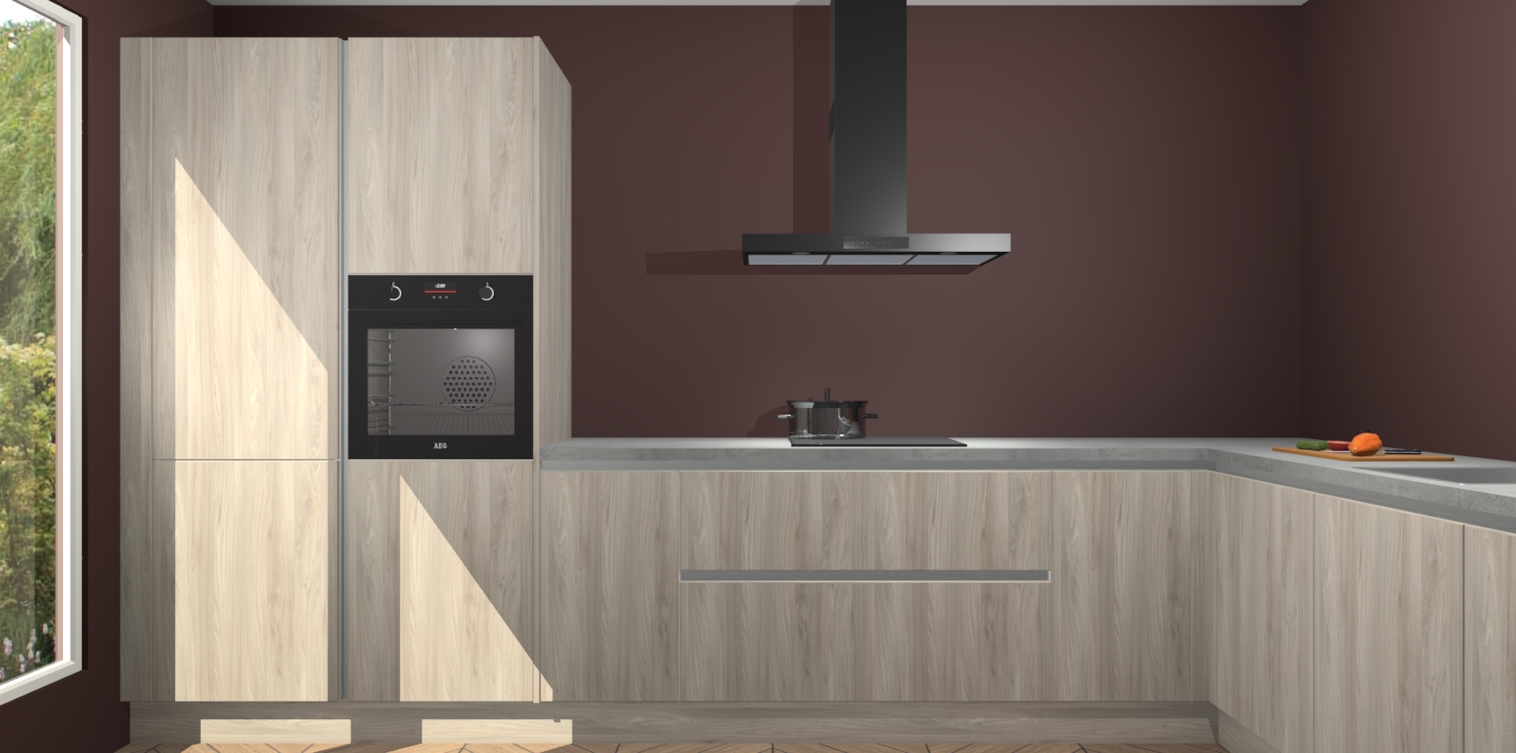 Met een modern, tijdloos design en ruime opslagruimte, zult u zich in no-time thuis voelen in uw nieuwe keuken. Uw leven wordt eenvoudiger met de soft-close deuren die voor het ultieme stille comfort zorgen - geen geluid dat u stoort terwijl u kookt. Ook is de keuken voorzien van 5 ingebouwde apparaten: een oven, inductie kookplaat, afzuigkap, vaatwasser en koelkast. Deze kunnen gemakkelijk na bestelling worden bijgewerkt naar AEG - waardoor uw luxe ervaring compleet is.