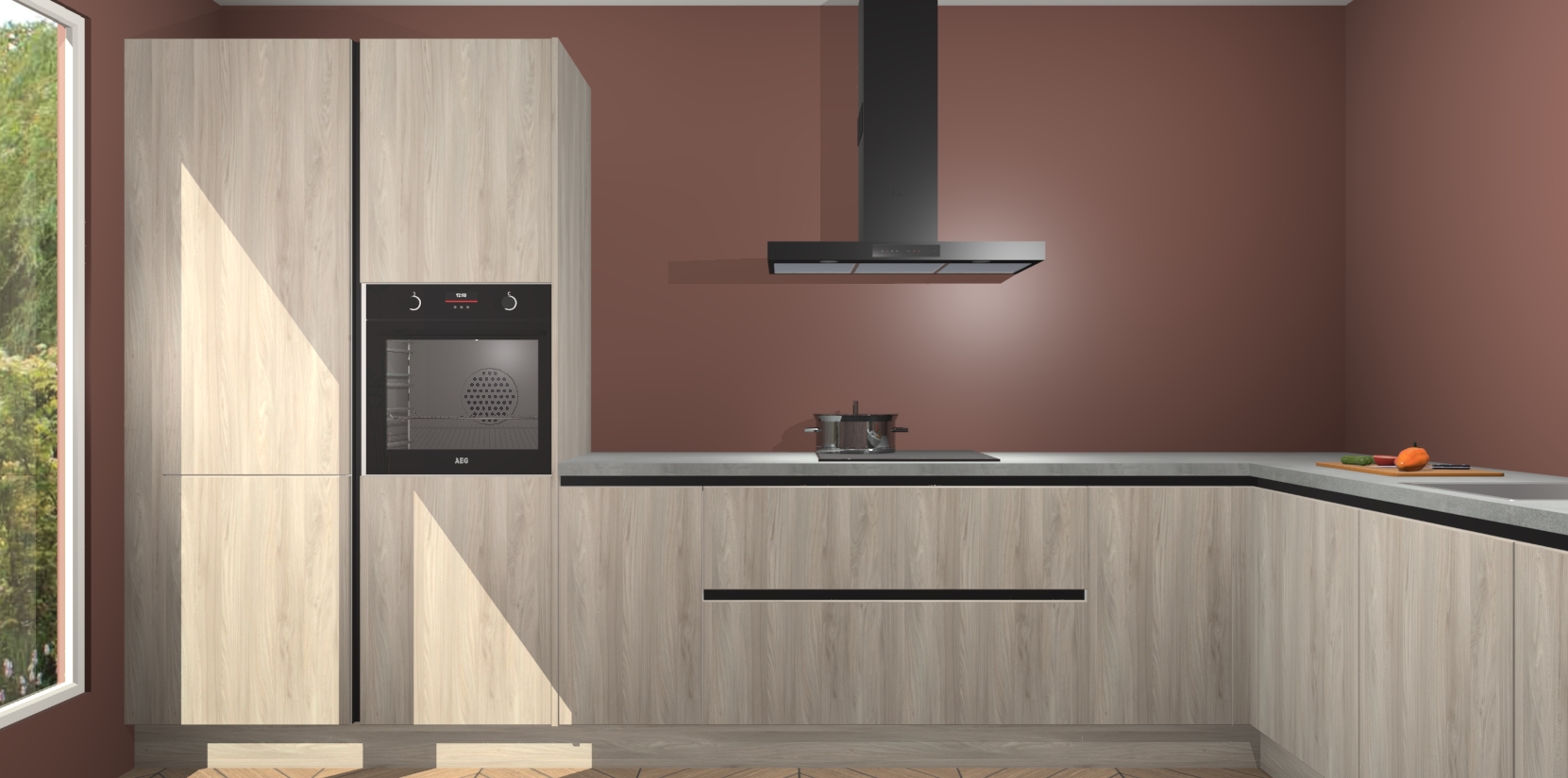 Met een modern, tijdloos design en ruime opslagruimte, zult u zich in no-time thuis voelen in uw nieuwe keuken. Uw leven wordt eenvoudiger met de soft-close deuren die voor het ultieme stille comfort zorgen - geen geluid dat u stoort terwijl u kookt. Ook is de keuken voorzien van 5 ingebouwde apparaten: een oven, inductie kookplaat, afzuigkap, vaatwasser en koelkast. Deze kunnen gemakkelijk na bestelling worden bijgewerkt naar AEG - waardoor uw luxe ervaring compleet is.