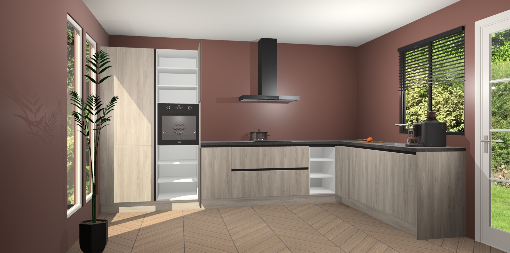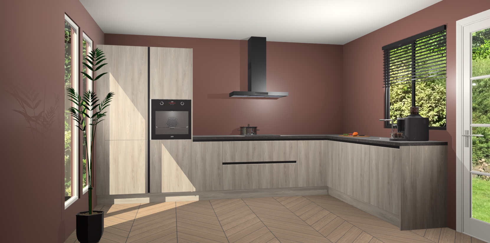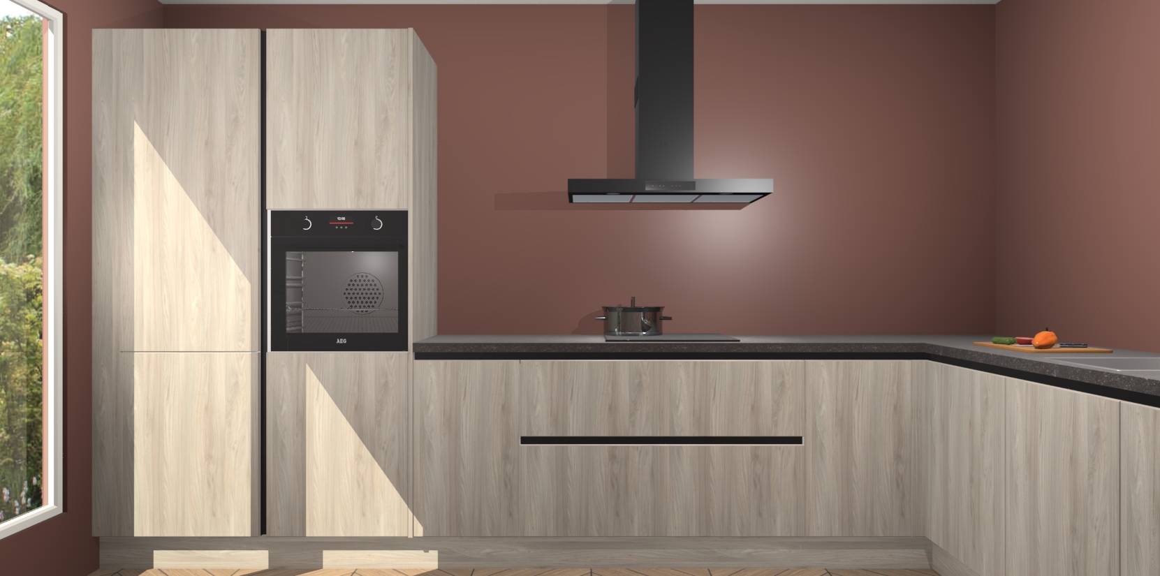 Met een modern, tijdloos design en ruime opslagruimte, zult u zich in no-time thuis voelen in uw nieuwe keuken. Uw leven wordt eenvoudiger met de soft-close deuren die voor het ultieme stille comfort zorgen - geen geluid dat u stoort terwijl u kookt. Ook is de keuken voorzien van 5 ingebouwde apparaten: een oven, inductie kookplaat, afzuigkap, vaatwasser en koelkast. Deze kunnen gemakkelijk na bestelling worden bijgewerkt naar AEG - waardoor uw luxe ervaring compleet is.
