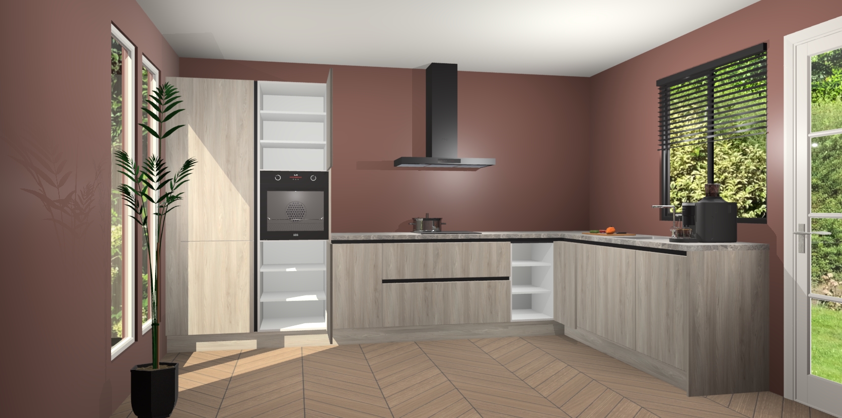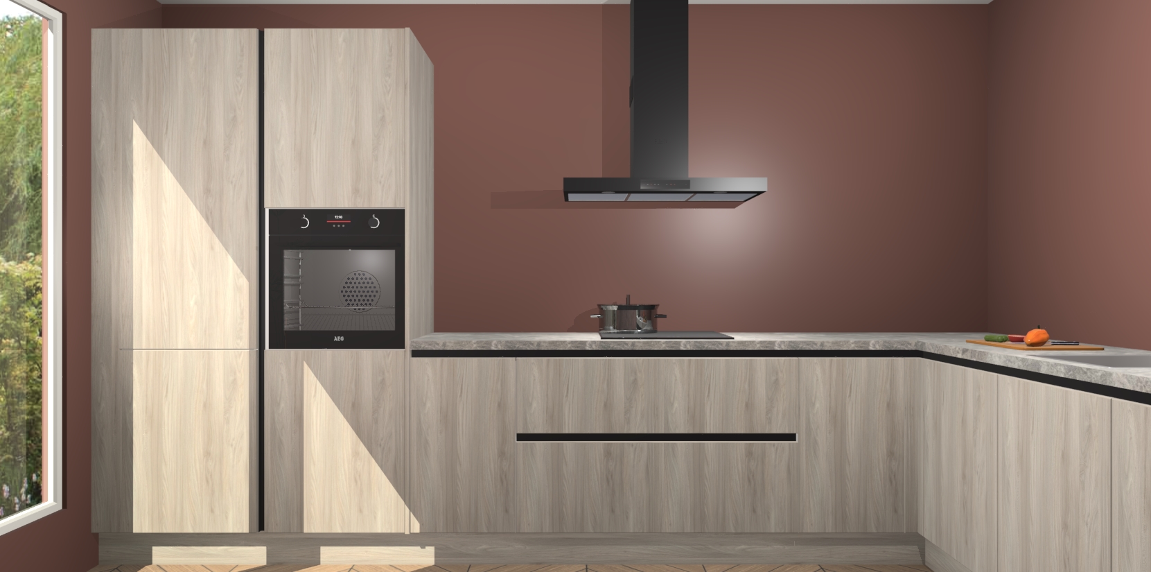 Met een modern, tijdloos design en ruime opslagruimte, zult u zich in no-time thuis voelen in uw nieuwe keuken. Uw leven wordt eenvoudiger met de soft-close deuren die voor het ultieme stille comfort zorgen - geen geluid dat u stoort terwijl u kookt. Ook is de keuken voorzien van 5 ingebouwde apparaten: een oven, inductie kookplaat, afzuigkap, vaatwasser en koelkast. Deze kunnen gemakkelijk na bestelling worden bijgewerkt naar AEG - waardoor uw luxe ervaring compleet is.