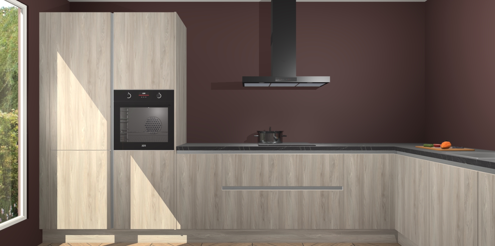 Met een modern, tijdloos design en ruime opslagruimte, zult u zich in no-time thuis voelen in uw nieuwe keuken. Uw leven wordt eenvoudiger met de soft-close deuren die voor het ultieme stille comfort zorgen - geen geluid dat u stoort terwijl u kookt. Ook is de keuken voorzien van 5 ingebouwde apparaten: een oven, inductie kookplaat, afzuigkap, vaatwasser en koelkast. Deze kunnen gemakkelijk na bestelling worden bijgewerkt naar AEG - waardoor uw luxe ervaring compleet is.