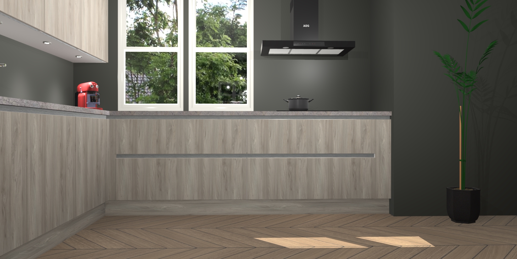 Inclusief plinten, stelpoten en werkblad