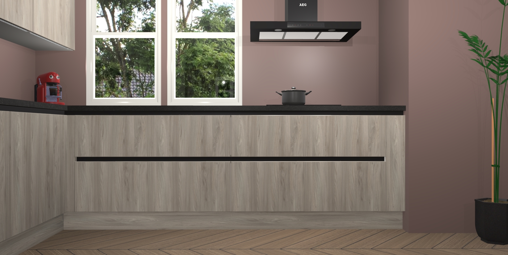 Inclusief plinten, stelpoten en werkblad