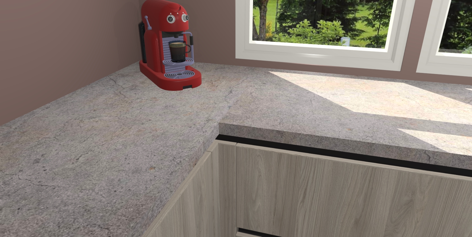 • Bij een hoekwerkblad zijn de hoeken in gevreesd en op maat gemaakt