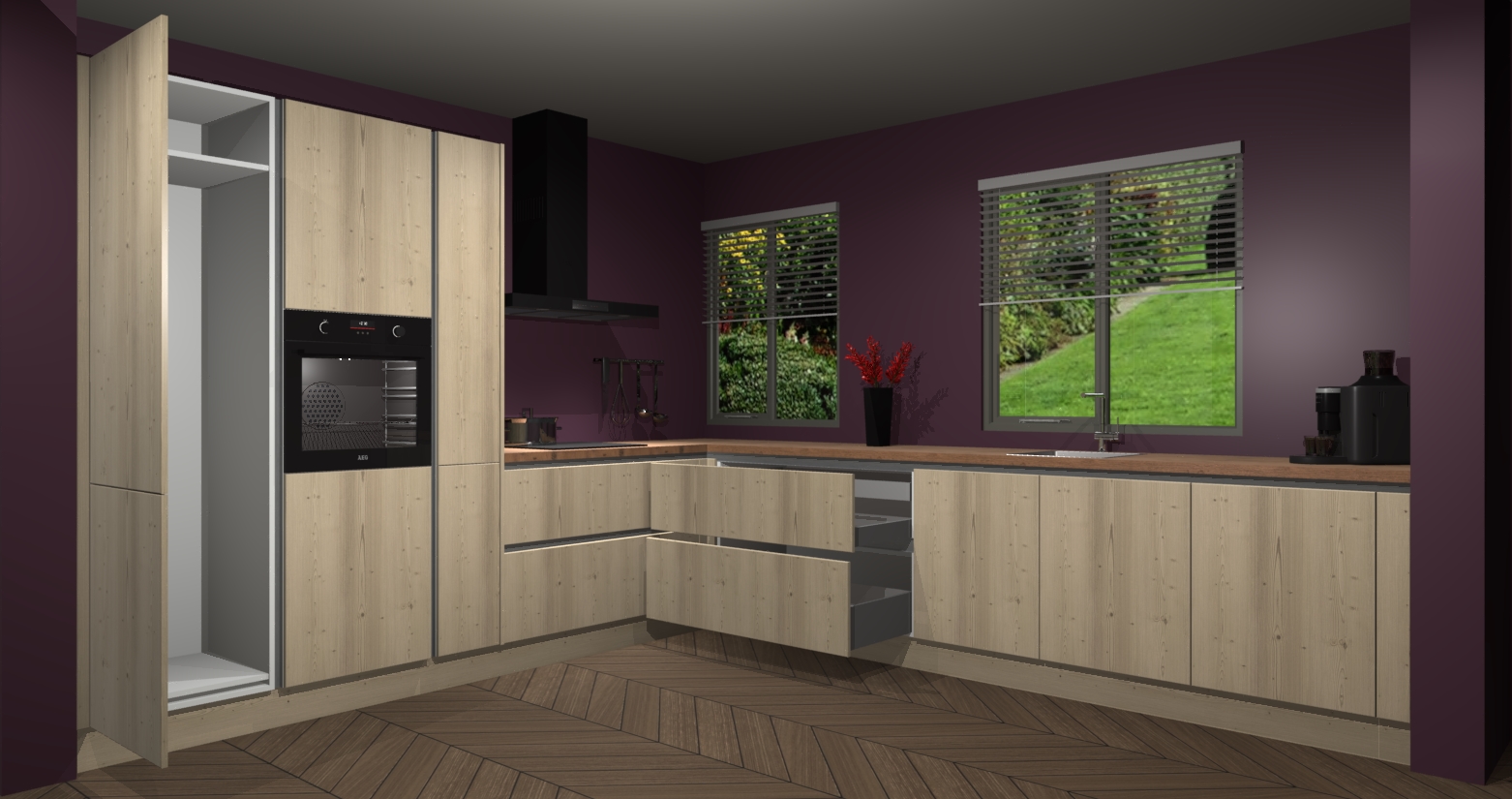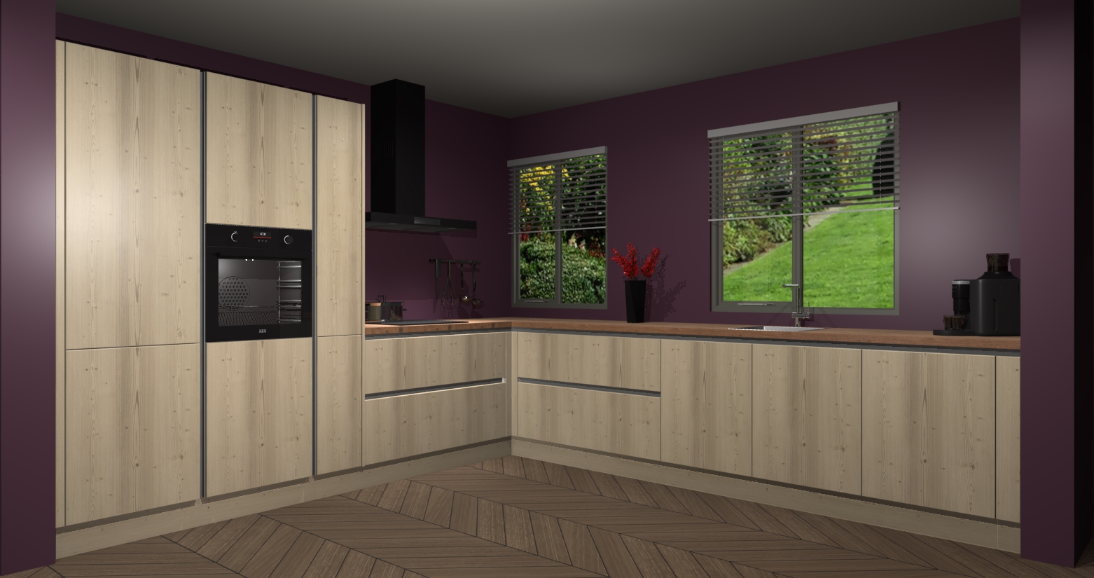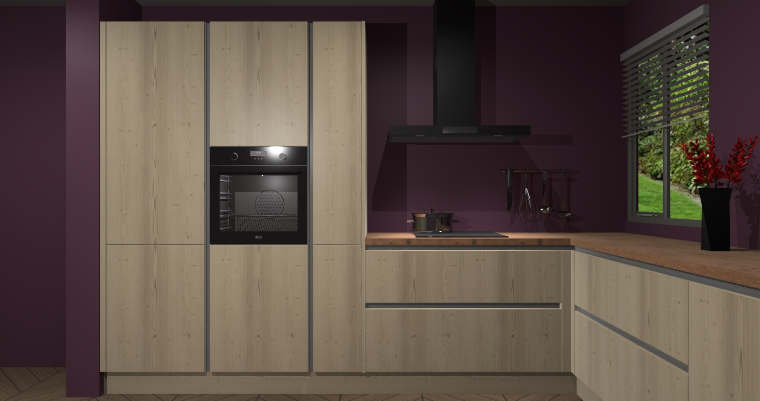 Welkom bij de Olm keuken Palermo. Deze prachtige keuken zal de komende jaren het middelpunt van de belangstelling in uw huis zijn. Uitgerust met vijf inbouwapparaten komt u nooit kookgereedschap tekort. Bovendien geeft de warme houtlook elke ruimte een uitnodigende en tijdloze uitstraling.