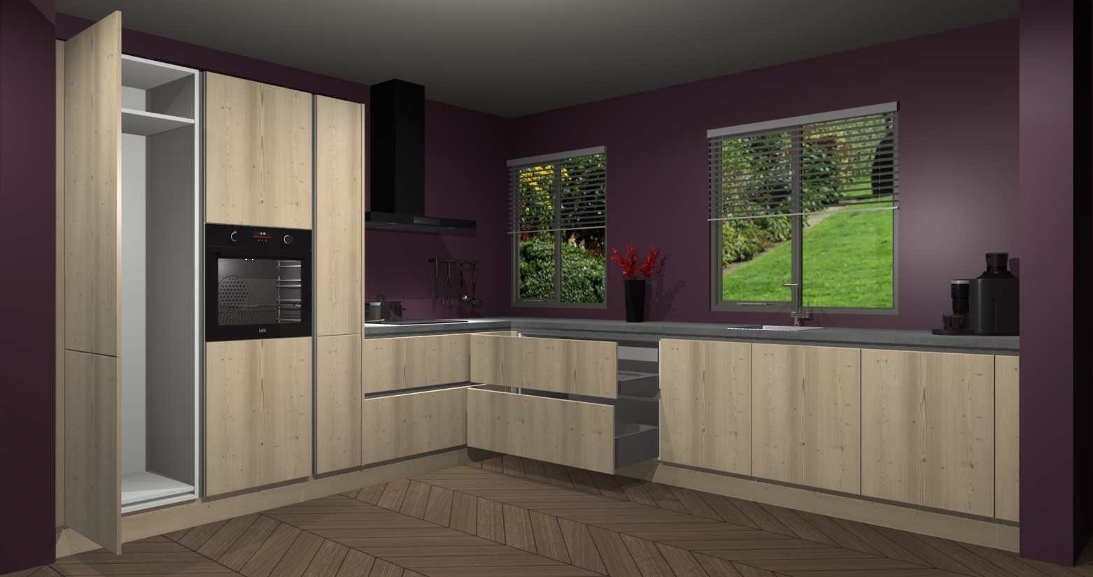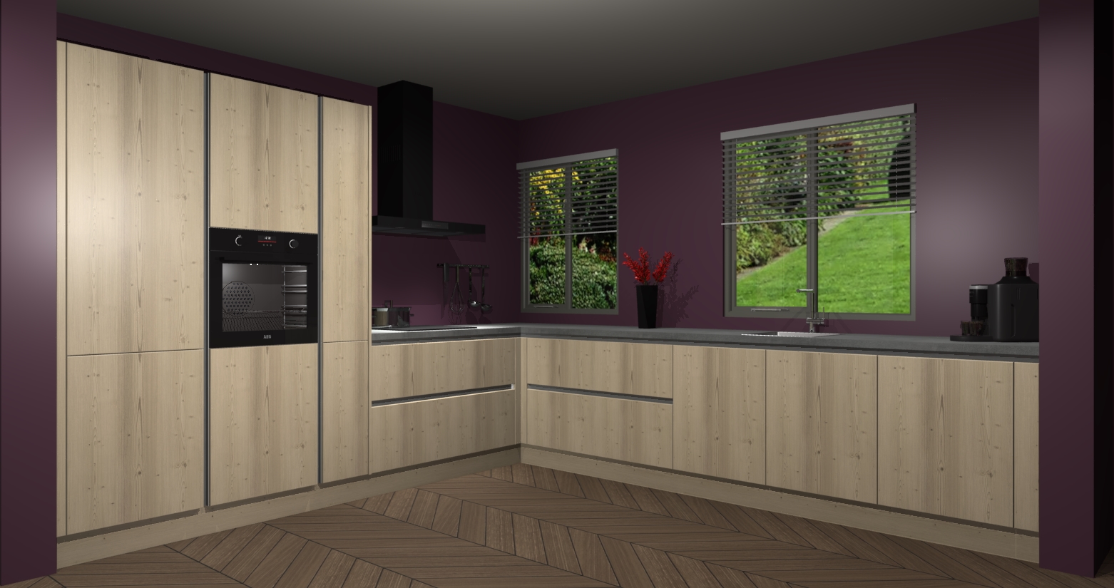 Welkom bij de Olm keuken Palermo. Deze prachtige keuken zal de komende jaren het middelpunt van de belangstelling in uw huis zijn. Uitgerust met vijf inbouwapparaten komt u nooit kookgereedschap tekort. Bovendien geeft de warme houtlook elke ruimte een uitnodigende en tijdloze uitstraling.