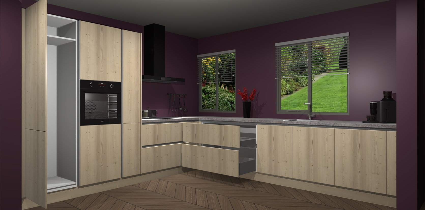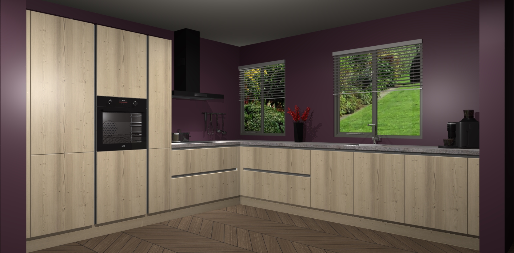 Welkom bij de Olm keuken Palermo. Deze prachtige keuken zal de komende jaren het middelpunt van de belangstelling in uw huis zijn. Uitgerust met vijf inbouwapparaten komt u nooit kookgereedschap tekort. Bovendien geeft de warme houtlook elke ruimte een uitnodigende en tijdloze uitstraling.