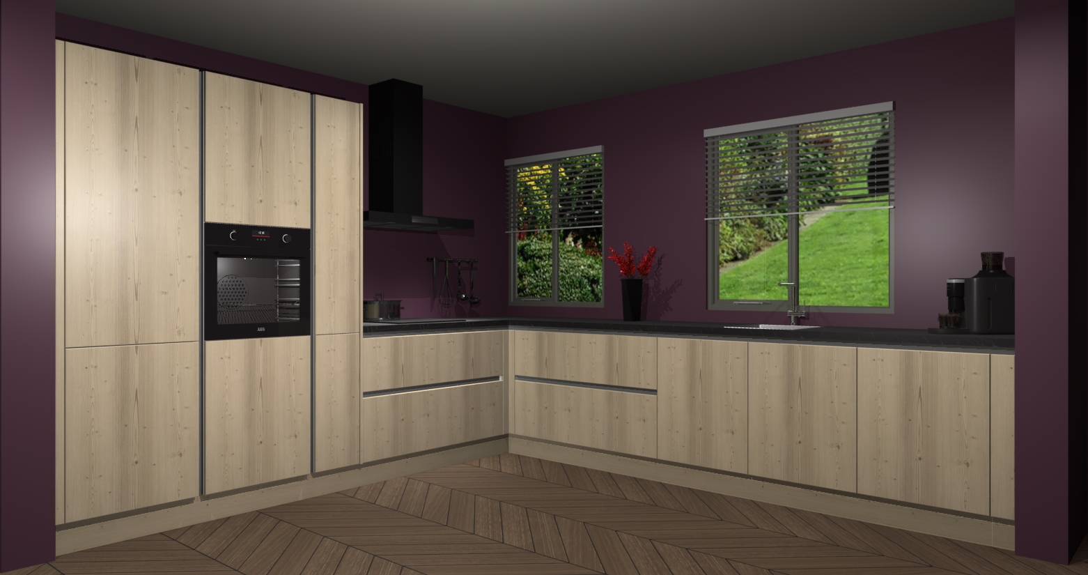 Welkom bij de Olm keuken Palermo. Deze prachtige keuken zal de komende jaren het middelpunt van de belangstelling in uw huis zijn. Uitgerust met vijf inbouwapparaten komt u nooit kookgereedschap tekort. Bovendien geeft de warme houtlook elke ruimte een uitnodigende en tijdloze uitstraling.