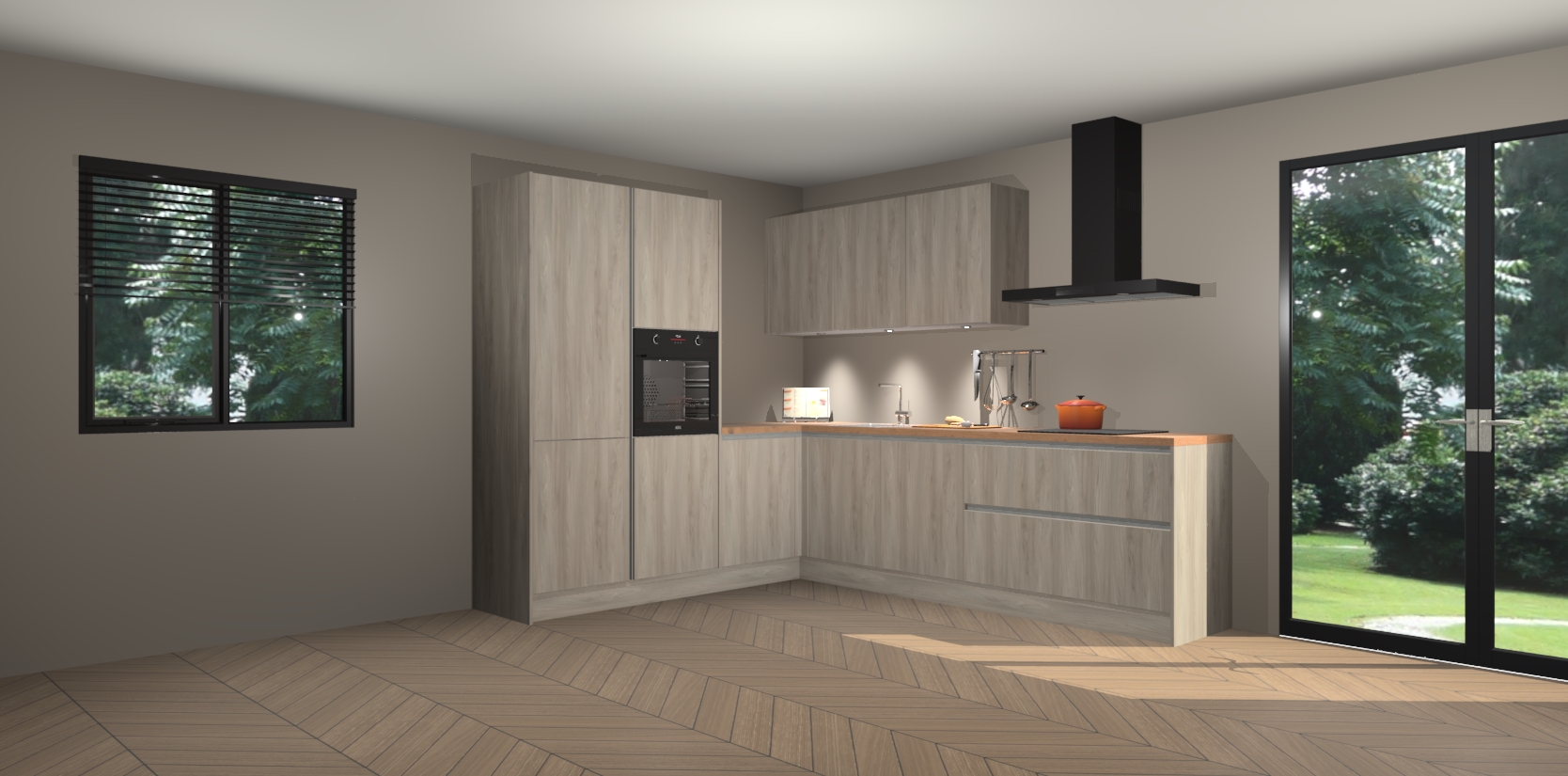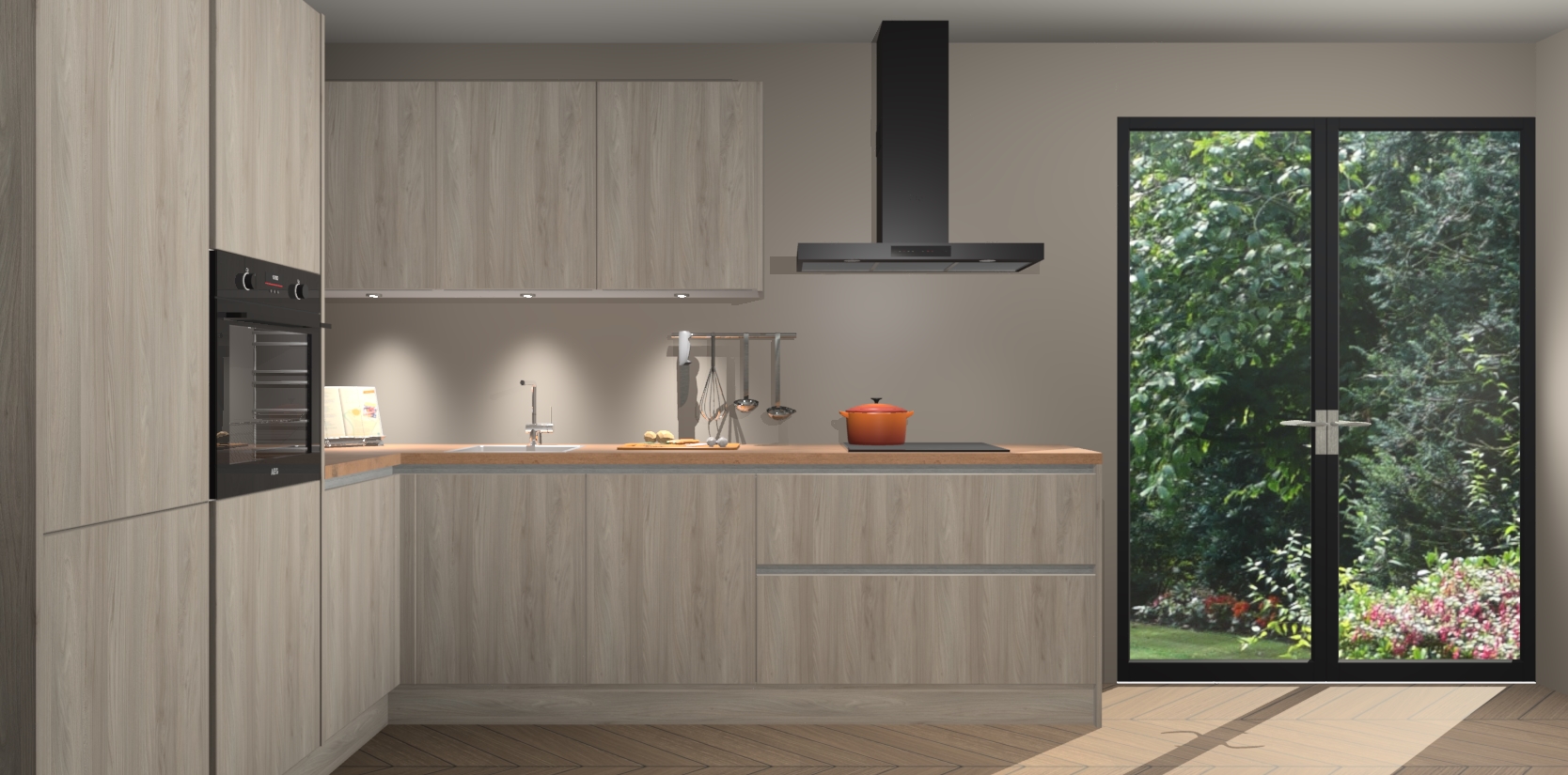Maak kennis met de olm greeploze keuken Parla - de perfecte aanvulling voor uw moderne keuken! Ervaar tijdloos design, elegantie en een chique uitstraling met onze zwarte handgrepen, soft-close deuren en veel opbergruimte. Dit alles wordt aangeboden tegen een vaste lage prijs voor ongeëvenaarde Duitse keukenkwaliteit!