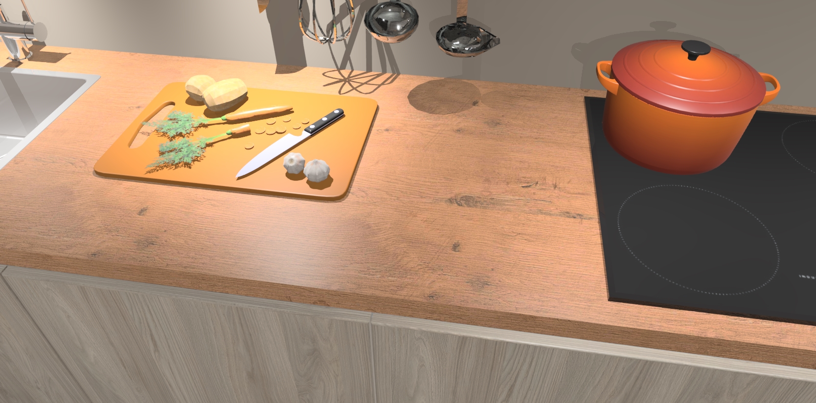 - Uitsparing van kookplaat, spoelbak en kraan dient u zelf te verzorgen.