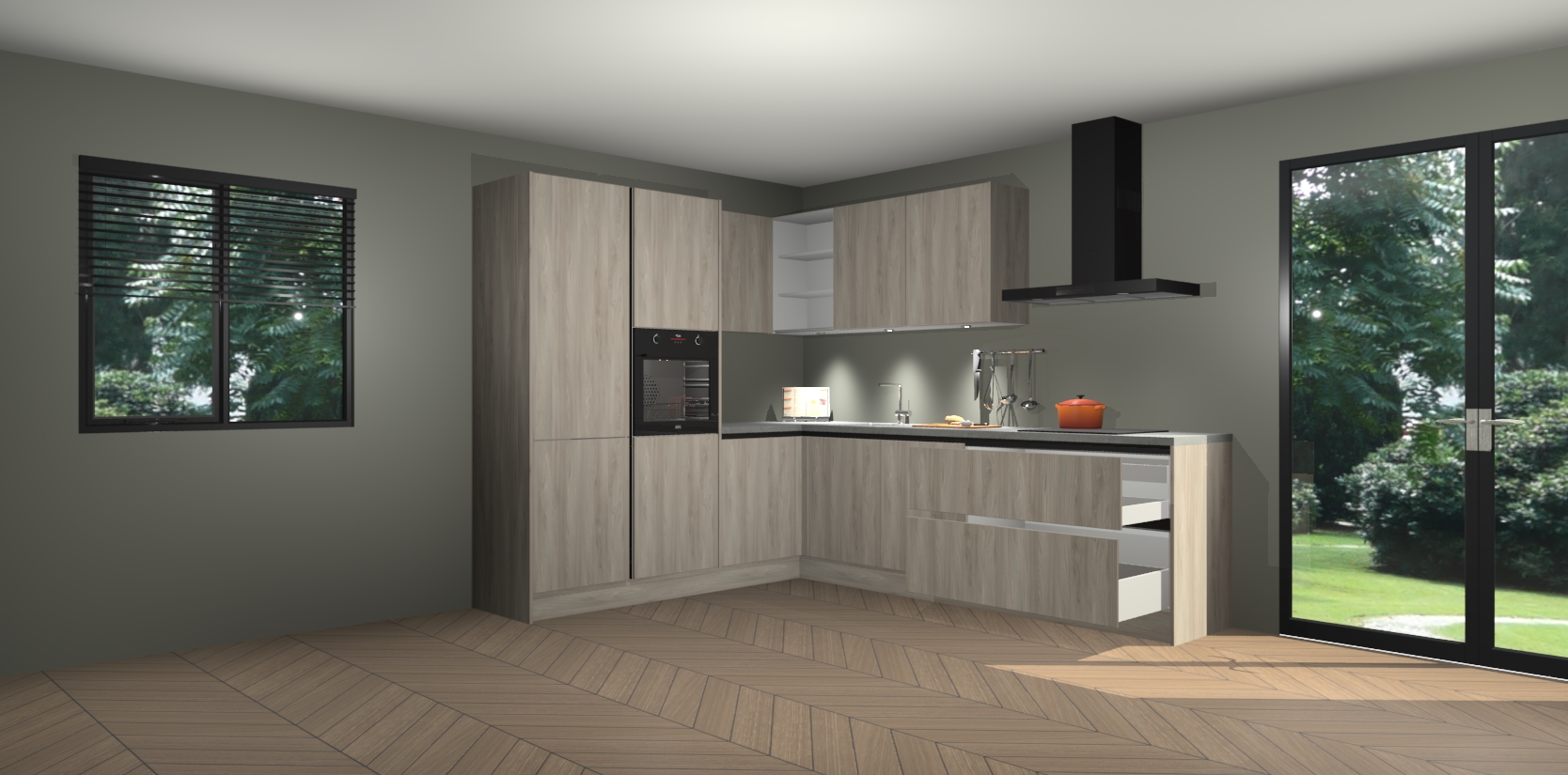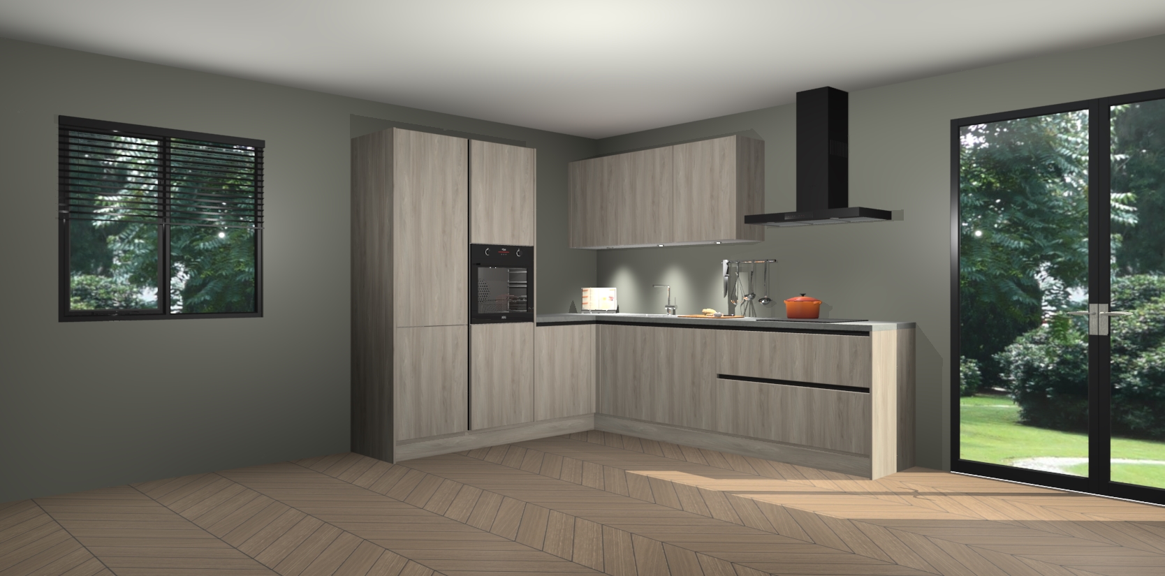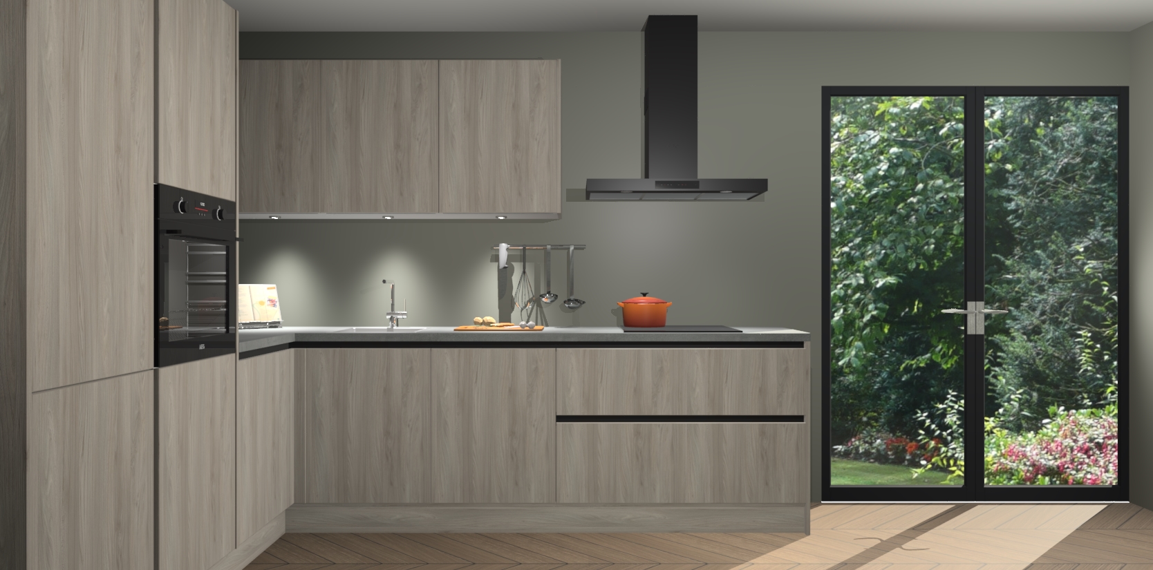 Maak kennis met de olm greeploze keuken Parla - de perfecte aanvulling voor uw moderne keuken! Ervaar tijdloos design, elegantie en een chique uitstraling met onze zwarte handgrepen, soft-close deuren en veel opbergruimte. Dit alles wordt aangeboden tegen een vaste lage prijs voor ongeëvenaarde Duitse keukenkwaliteit!