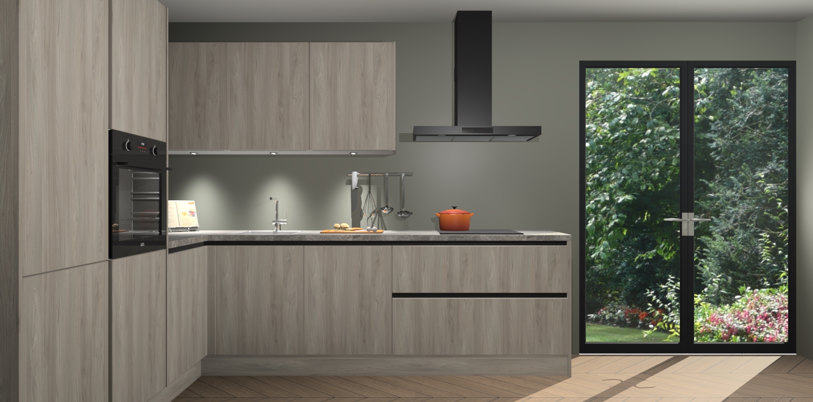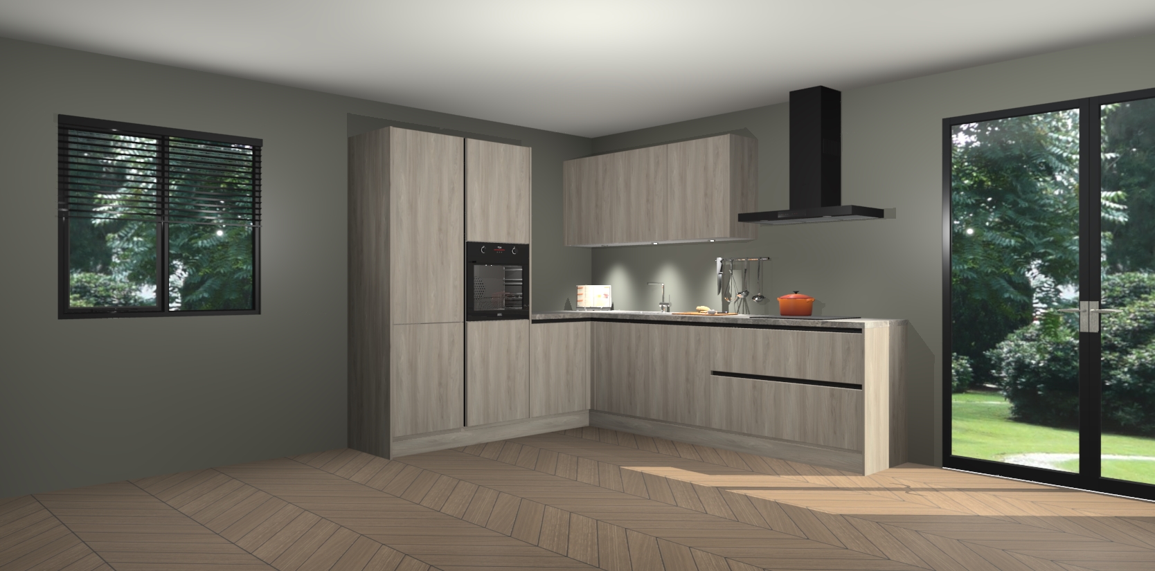 Maak kennis met de olm greeploze keuken Parla - de perfecte aanvulling voor uw moderne keuken! Ervaar tijdloos design, elegantie en een chique uitstraling met onze zwarte handgrepen, soft-close deuren en veel opbergruimte. Dit alles wordt aangeboden tegen een vaste lage prijs voor ongeëvenaarde Duitse keukenkwaliteit!